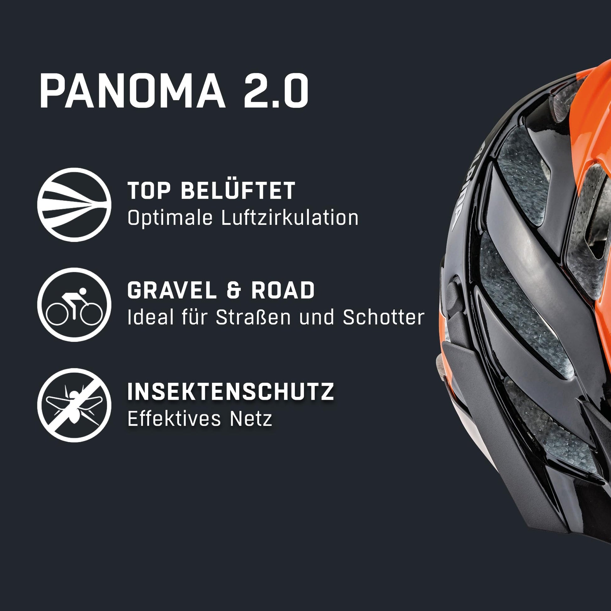ALPINA PANOMA - Reflective & Optimal Ventilated Bike Helmet with Insect Net & Retrofit LED for Adults, black-orange, M (56-59 cm)