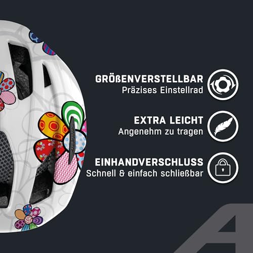 Alpina PICO - Lightweight, optimally ventilated & impact resistant bike helmet with insect net for children, optional with light, pearl white-flower gloss, 50-55 cm.
