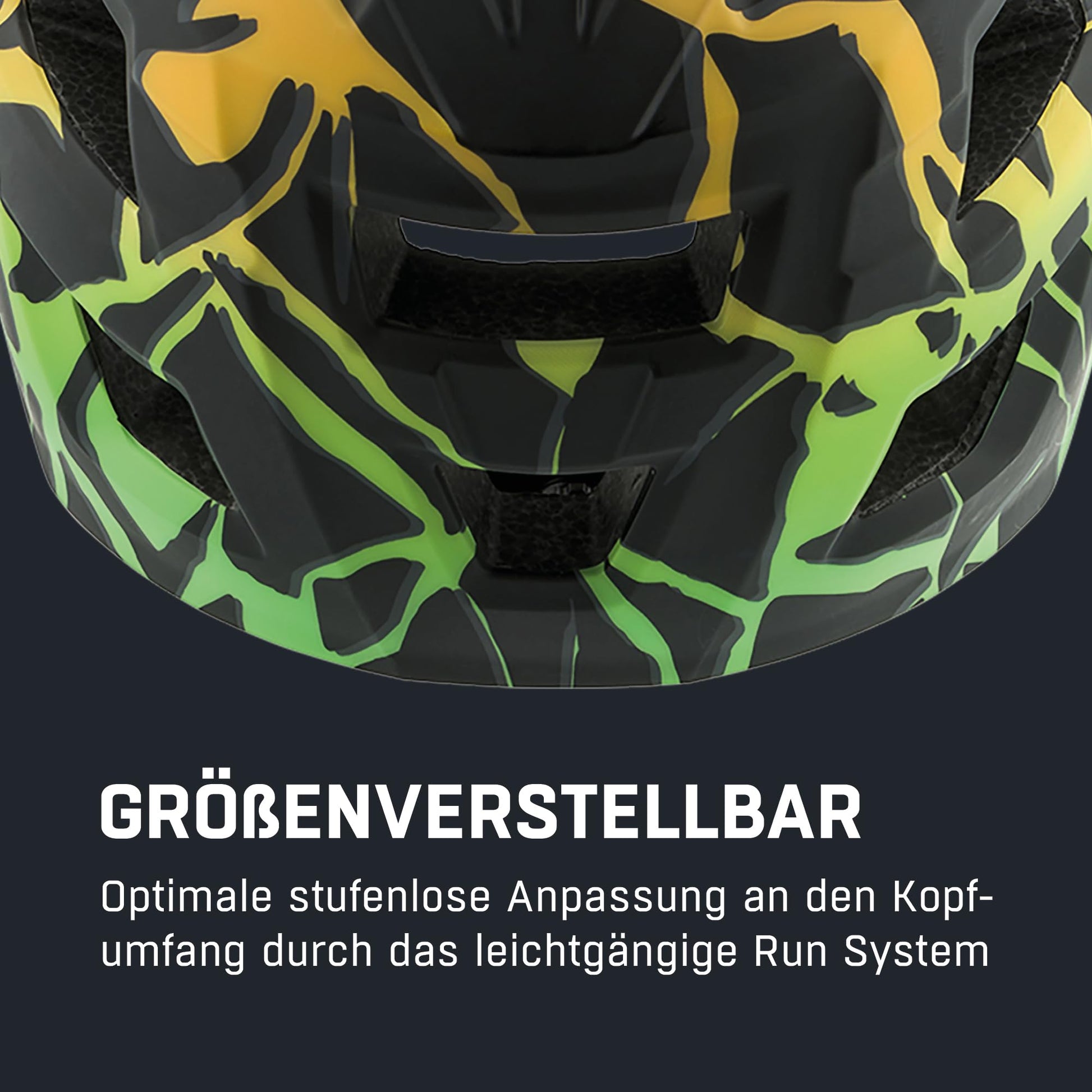 ["Versatile full-face helmet for children and teenagers: Provides maximum protection while cycling and engaging in other outdoor activities – great for getting started with mountain biking","Detachable chin guard for flexible use: The helmet can be worn with or without chin protection, depending on the activity and desired level of protection","Great fit thanks to Run System: The helmet can be easily adjusted to fit any head shape and remains secure and comfortable","Optimal safety with slim design: The helmet impresses with its extra-thin wall thickness and narrow shape, without compromising on protection thanks to HI-EPS material","Effective ventilation for high wearing comfort: Strategically placed ventilation openings ensure pleasant air circulation inside the helmet, great for longer wearing times"]