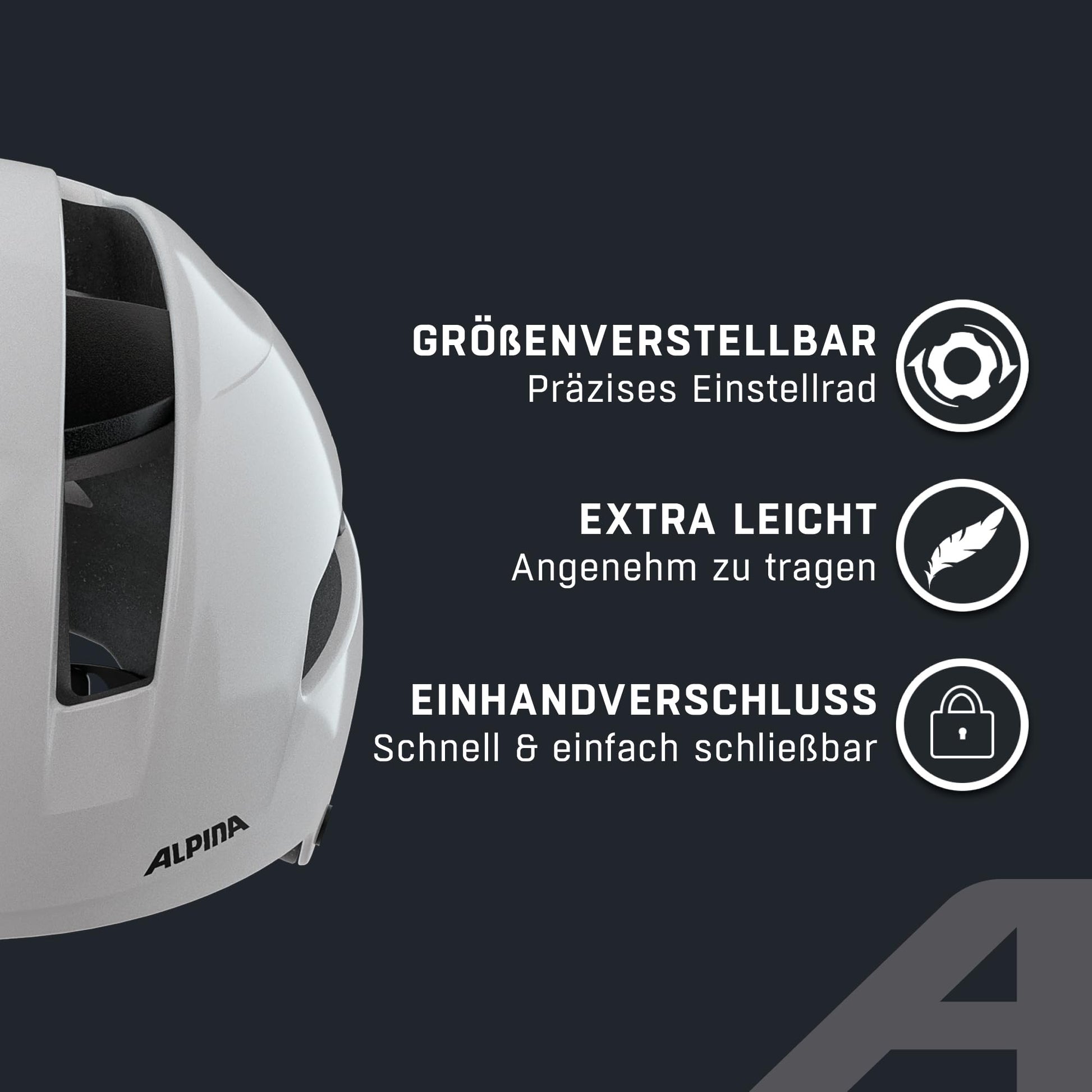 Alpina SOHO - Extremely sturdy, lightweight & individually adjustable urban bike helmet for adults, White Gloss, 55-59 cm