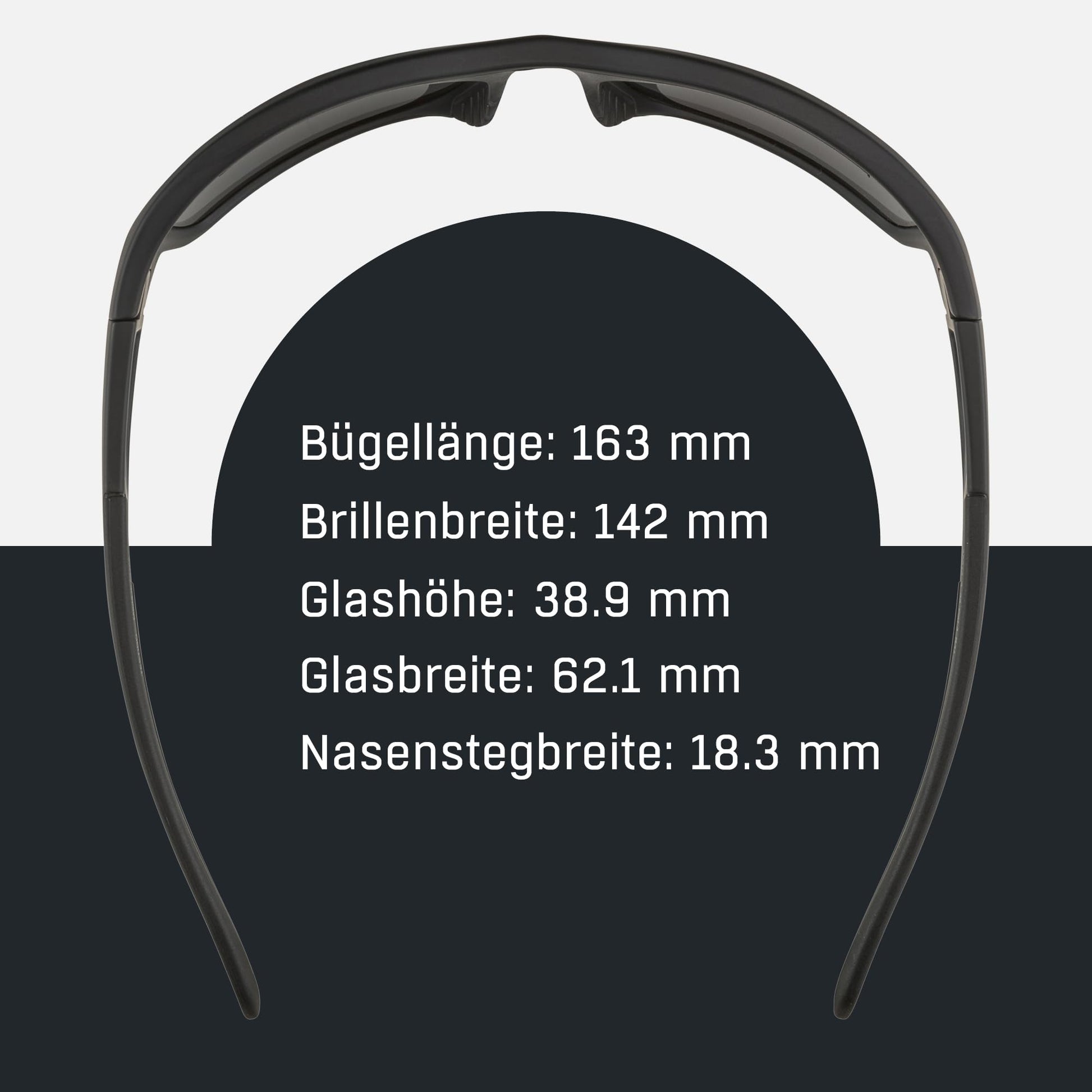 ["The full frame design is suitable for both everyday wear and sports","Rubberized temple ends and nose pads with soft inserts ensure a comfortable fit","The mirroring reflects infrared rays","The lenses made of ceramic material are shatterproof and offer maximum protection","100% UV protection"]