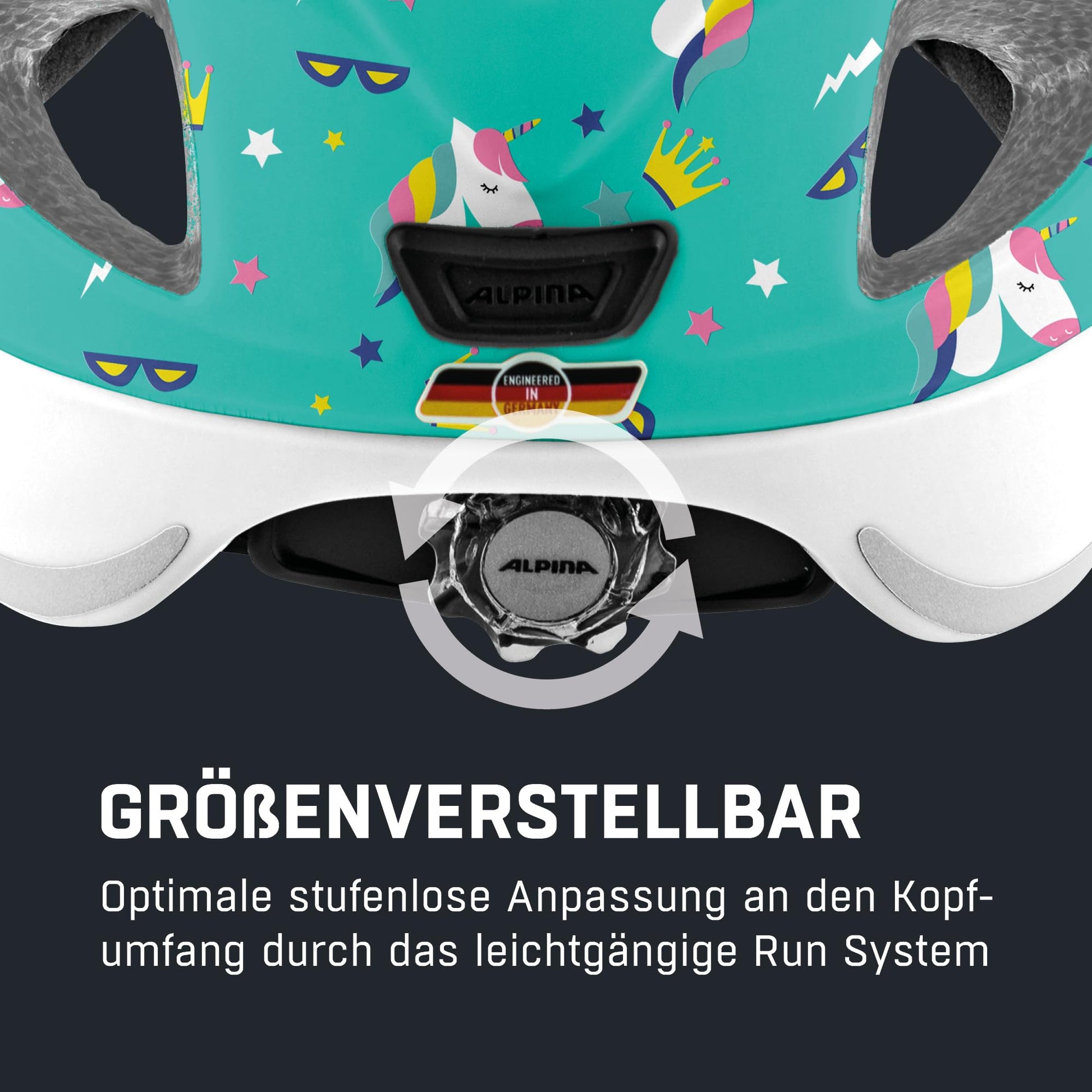 ["The Run System Classic Slide allows for a three-dimensional adjustment to the head","The high position of the integrated Multi-Fit Light ensures the best possible visibility","Strategically placed ventilation openings keep sun rays away from the head, while also providing very good ventilation","The flat back increases comfort in child seats and trailers","Reflectors ensure excellent visibility"]