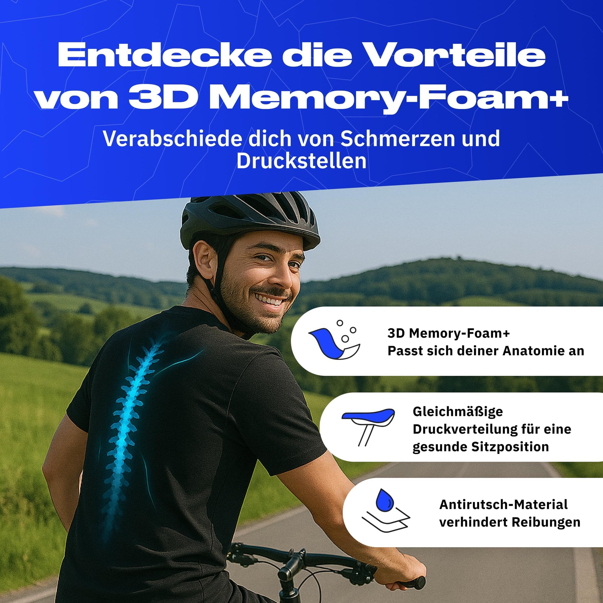 "New Alpensattel Models 3.0 offer maximum comfort with ergonomic design to minimize pressure points and promote blood circulation, preventing pain in seat and back area. Equipped with 3D Memory Foam and water/sweat-resistant coating for a durable and comfortable ride. Universal mount allows easy installation on most bikes. Breathable coating keeps rider dry and comfortable in changing weather conditions. Certified by IGR for ergonomic benefits and suitability for healthy posture."