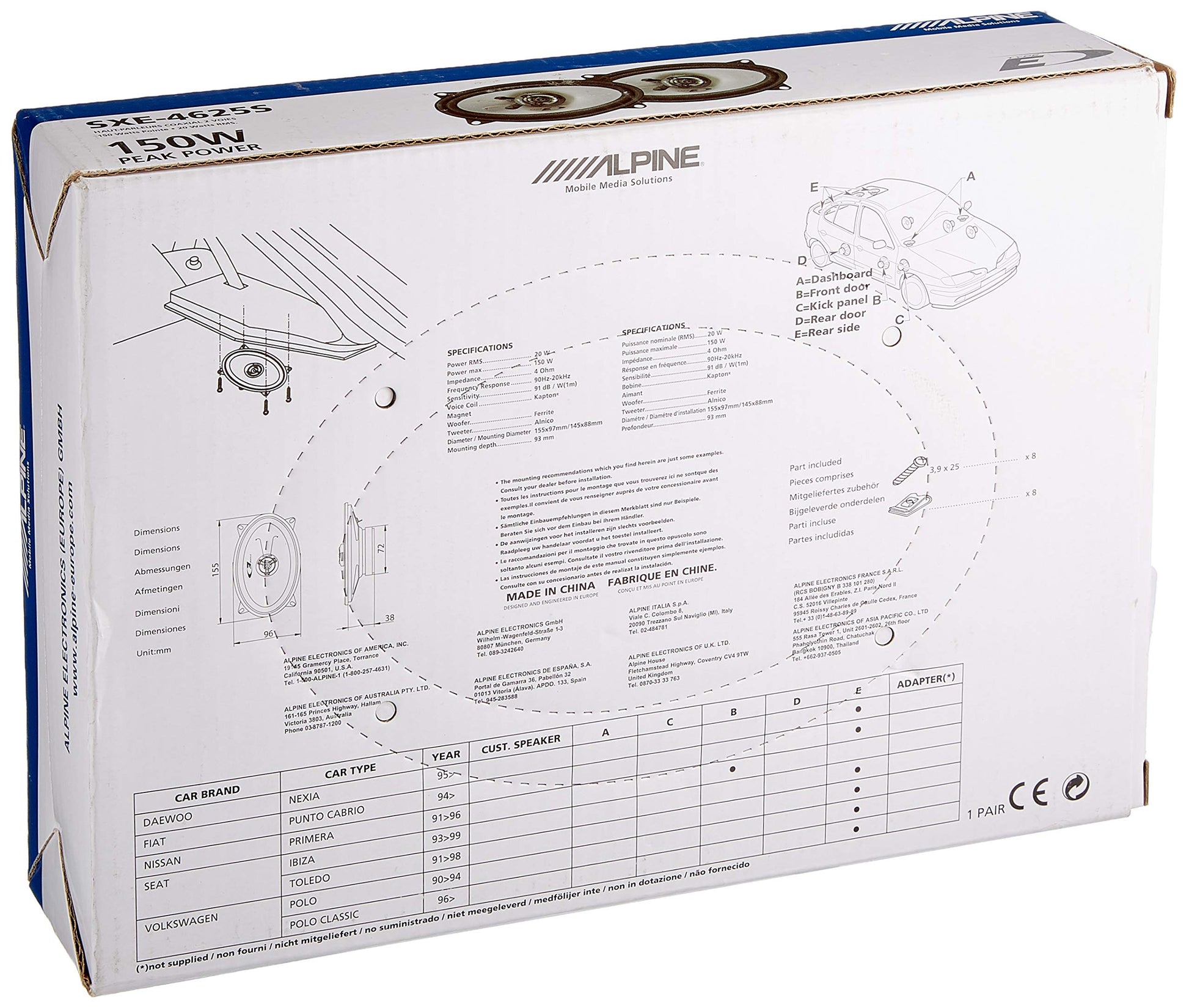 Alpine SXE-4625S - 4x6 inch 2-way coaxial speakers, 60w, black.