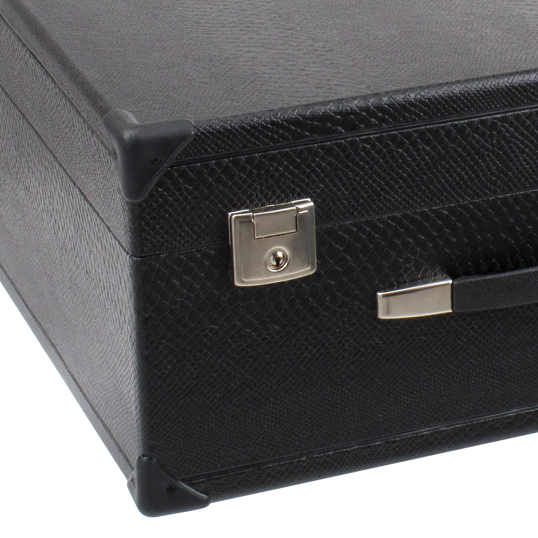 ["Carrying case for 96 bass accordions, wooden core","Black faux leather cover, soft plush padding","Lockable, Color: Black, includes 2 keys, Weight: 11.68 lbs","Outer dimensions: 22 in x 19.7 in x 9.8 in (W x D x H)","Inner dimensions: 20 in x 17.7 in x 8.7 in (W x D x H)"]