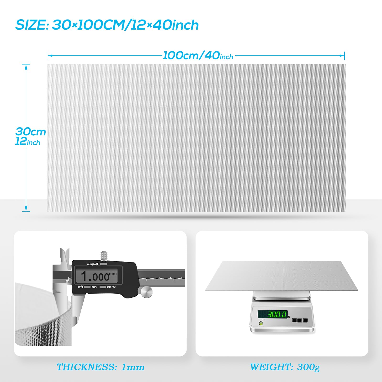 "Suitable size - We offer five different sizes: 12 x 12 inches, 12 x 24 inches, 12 x 40 inches, 24 x 24 inches, 24 x 40 inches, Thickness: 0.8 mm. You can choose the size that is best for your project, easily cut the sheet into the desired shape or size to meet your various projects.",