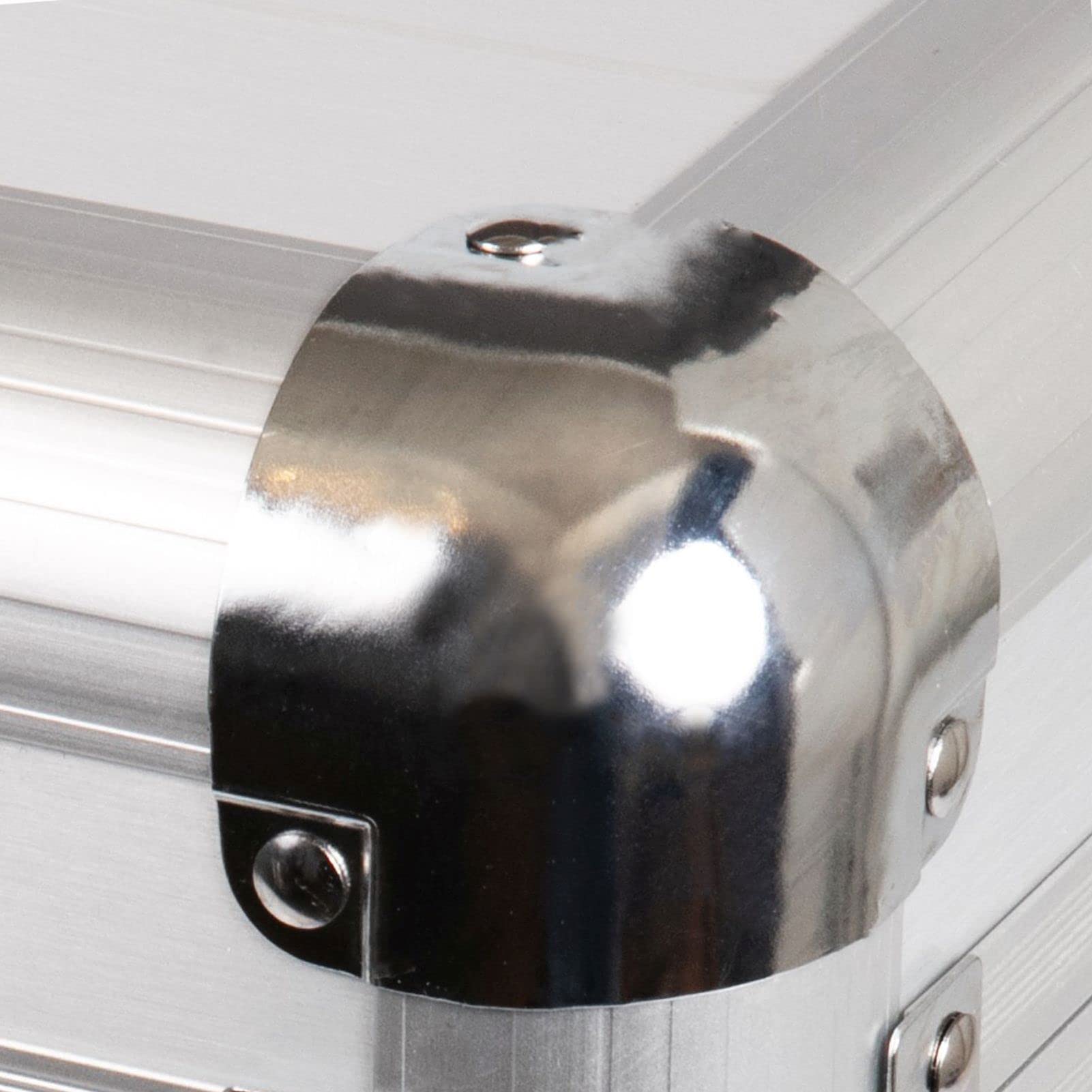 Sturdy construction with reinforced corners and edges, as well as an ergonomic heavy-duty aluminum handle. Two combination locks ensure secure closure against unauthorized access.