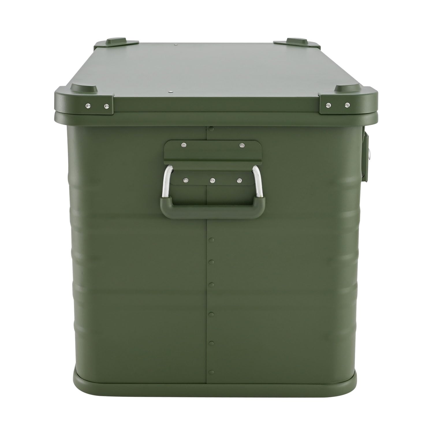 Aluminum box lockable E78G OLIVE GREEN - Premium storage box 78 liters - Material thickness 1mm - Lid with aluminum die-cast stacking corners and rubber seal - including locks - painted