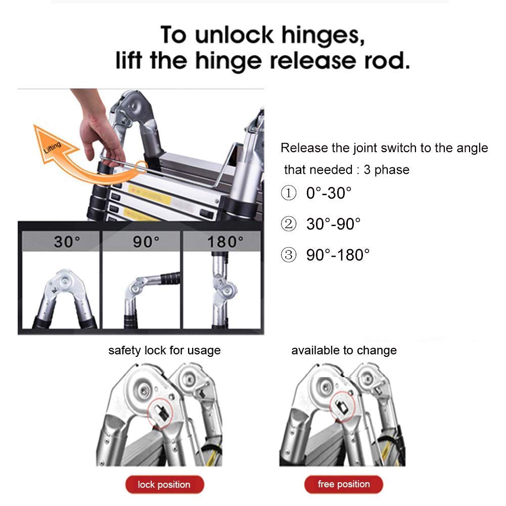 ["Perfect safety and stability, maximum load capacity up to 330 lbs, non-slip rubber feet ensure that the folding ladder does not move during use, ensuring your safety","The extendable and foldable design allows you to fold or extend the ladder to 16.5 feet. When not using the telescopic ladder, the multipurpose ladder can be folded to a minimum height of 36.6 inches, effectively reducing storage space","Suitable for both residential and professional applications, ideal for indoor and outdoor tasks such as working at heights, painting, and tree trimming","This is a 16.5-foot folding telescoping ladder. Great helper for indoor and outdoor tasks at home.","Very practical aluminum ladder, folded height: 36.6 inches; extended height: 16.5 feet; steps: 16; net weight: 40.1 lbs; width of each step: 11.4 inches"]