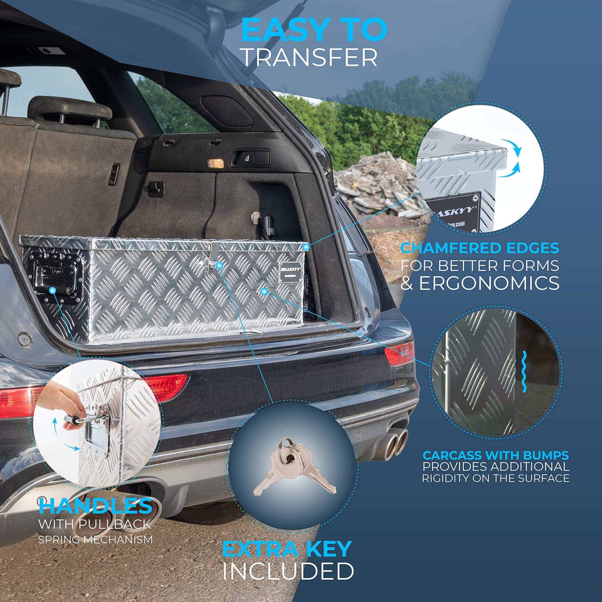 Despite its lightweight, the HASKYY Aluminum Coupling Box is robust enough to safely transport even heavier items.
