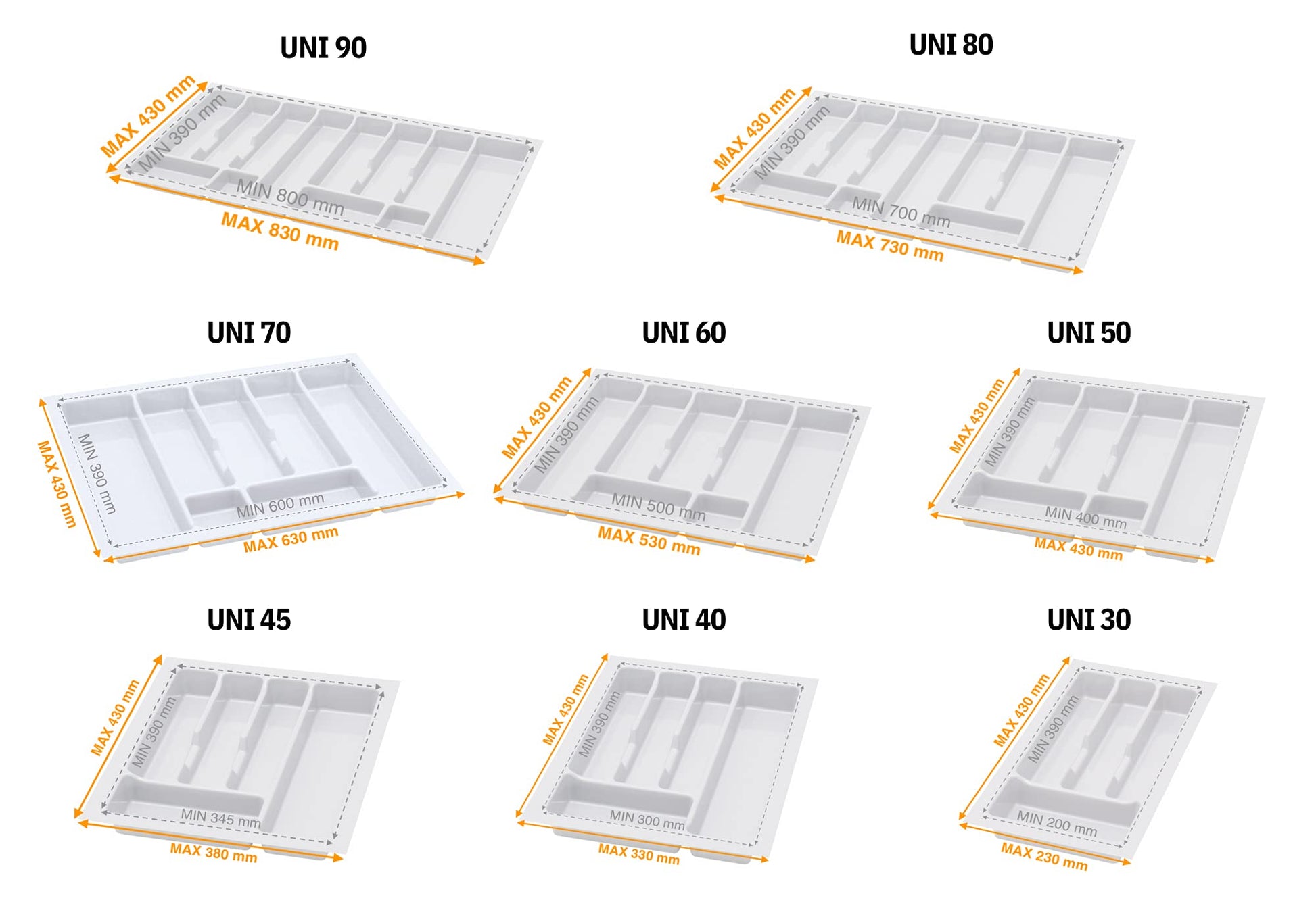 Customizable - The drawer divider can be easily cut to fit perfectly into any drawer. Suitable for various furniture pieces regardless of their size. Available in white and silver to seamlessly blend into your kitchen decor."
