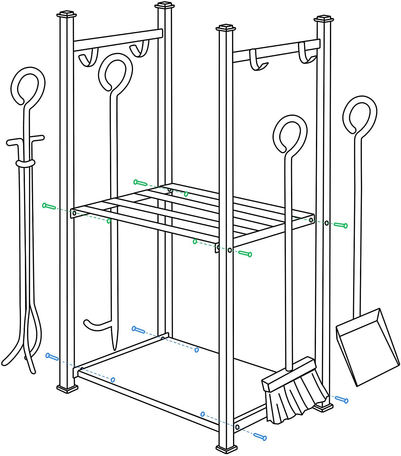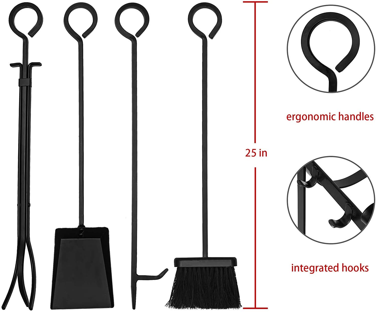 ["Solid & durable: Professional companion set for fireplace log rack, made of wrought iron and thickened square tube frame to ensure a stronger wood storage for wood burners.14.2 inch x 11.7 inch square base to accommodate your firewood. The 0.94 inch raised base off the ground allows airflow to keep the wood dry.","Large capacity: The fireplace log rack measures 28.3 inches x 18.1 inches x 11.8 inches (HxLxW), with double-layer wood storage rack of 14.2 inches x 11.8 inches, perfect size to hold enough firewood stacks for wood indoors or outdoors. And the base storage shelf is perfect for double storage of kindling, fire starters, etc.","Indoor and outdoor: Sturdy fireplace companion set with wrought iron material frame and black powder coating design, durable and rustproof for indoor and outdoor storage, could be well stocked with a bundle of firewood. The fireplace log rack set keeps your firewood and tools in one convenient, beautiful place.","Multifunctional: Practical fireplace log rack for indoor and outdoor with tools for fireplace accessories. The upper wood rack is suitable for storing chopped wood sticks. And the base storage shelf is perfect for storing kindling, fire starters, etc. the four fireplace tools: tongs, poker, broom, and shovel Comprehensive fireplace tool set for your fireplace.","Customer service: Amagabeli fireplace log rack with 4 tools to solve all your daily needs this winter, perfect wood holder for a smaller space and great for fireplaces, wood stoves, and fire pits. We strive to offer you premium products and provide you with impeccable customer service. Don't wait any longer and start enjoying your ideal products today!"]