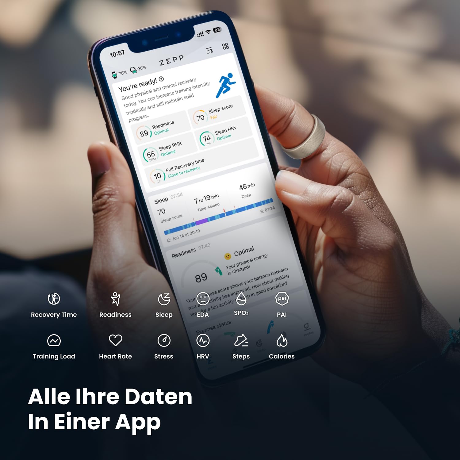 Manage all the functions of your smartwatch and smart ring effortlessly with just one Zepp app. Through a unified application interface, you can view health data, set reminders, and sync information, simplifying operation and enhancing the user experience. One app does it all, making smart living easier than ever.