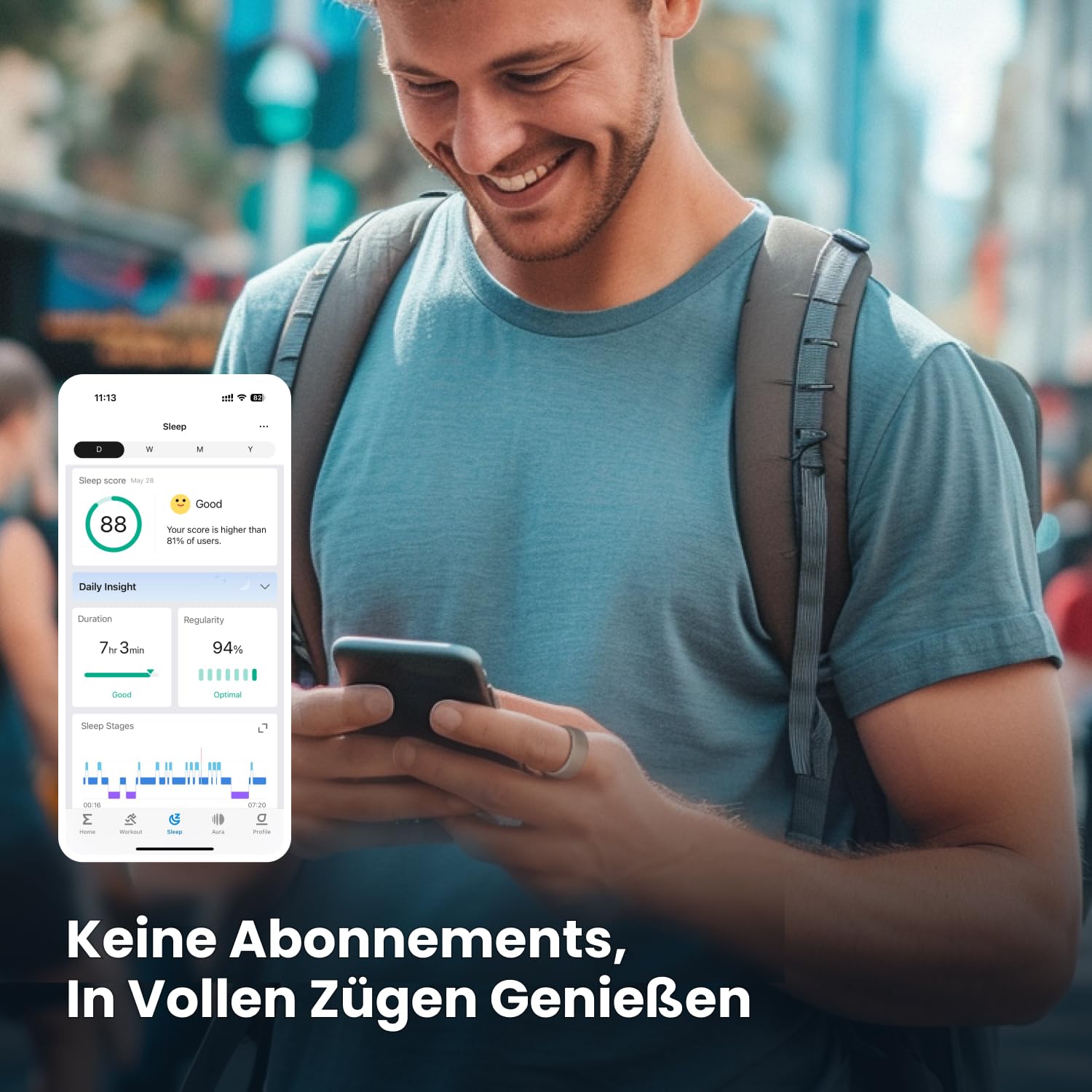 The smart ring is lightweight, comfortable, and fits closely to the skin, making it barely noticeable. It's lighter than traditional smartwatches, allowing you to effortlessly wear it in any situation. Whether you're exercising, resting, or socializing, the smart ring makes health monitoring easier and more comfortable, allowing you to enjoy the smart life anytime, anywhere.