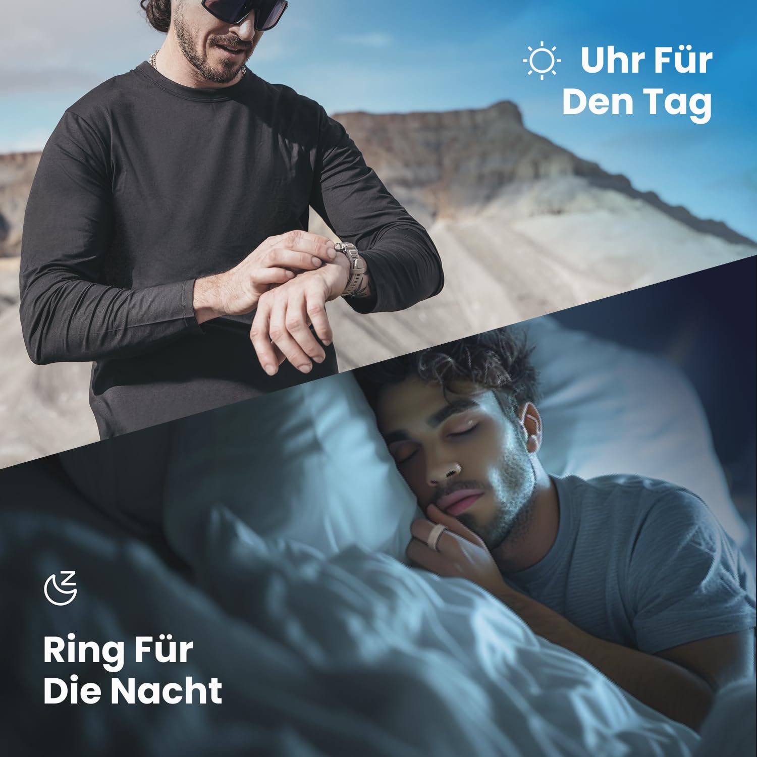 "Wear your smartwatch during the day and your smart ring at night to monitor your health continuously for 24 hours and have a smart experience. During the day, the smartwatch provides comprehensive fitness tracking, message notifications, and workday management. At night, the lightweight and comfortable smart ring monitors your sleep quality, heart rate, blood oxygen levels, and other data to ensure a peaceful and restful sleep.