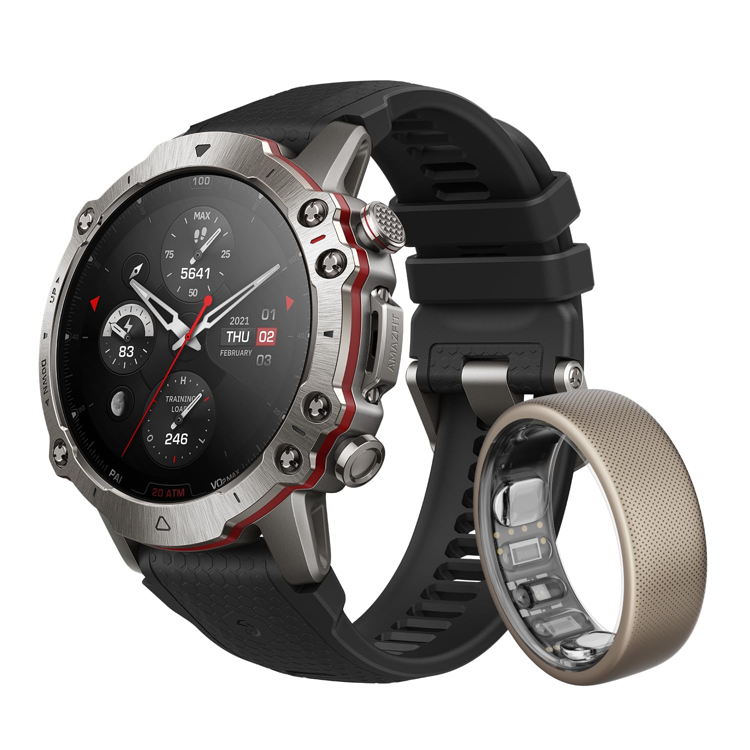 Amazfit Falcon Smartwatch, titanium case, multisport offline map support, 14-day battery life, dual-band and 6 satellite positioning, strength training, 200m waterproof, and Helio-ring size 10.
