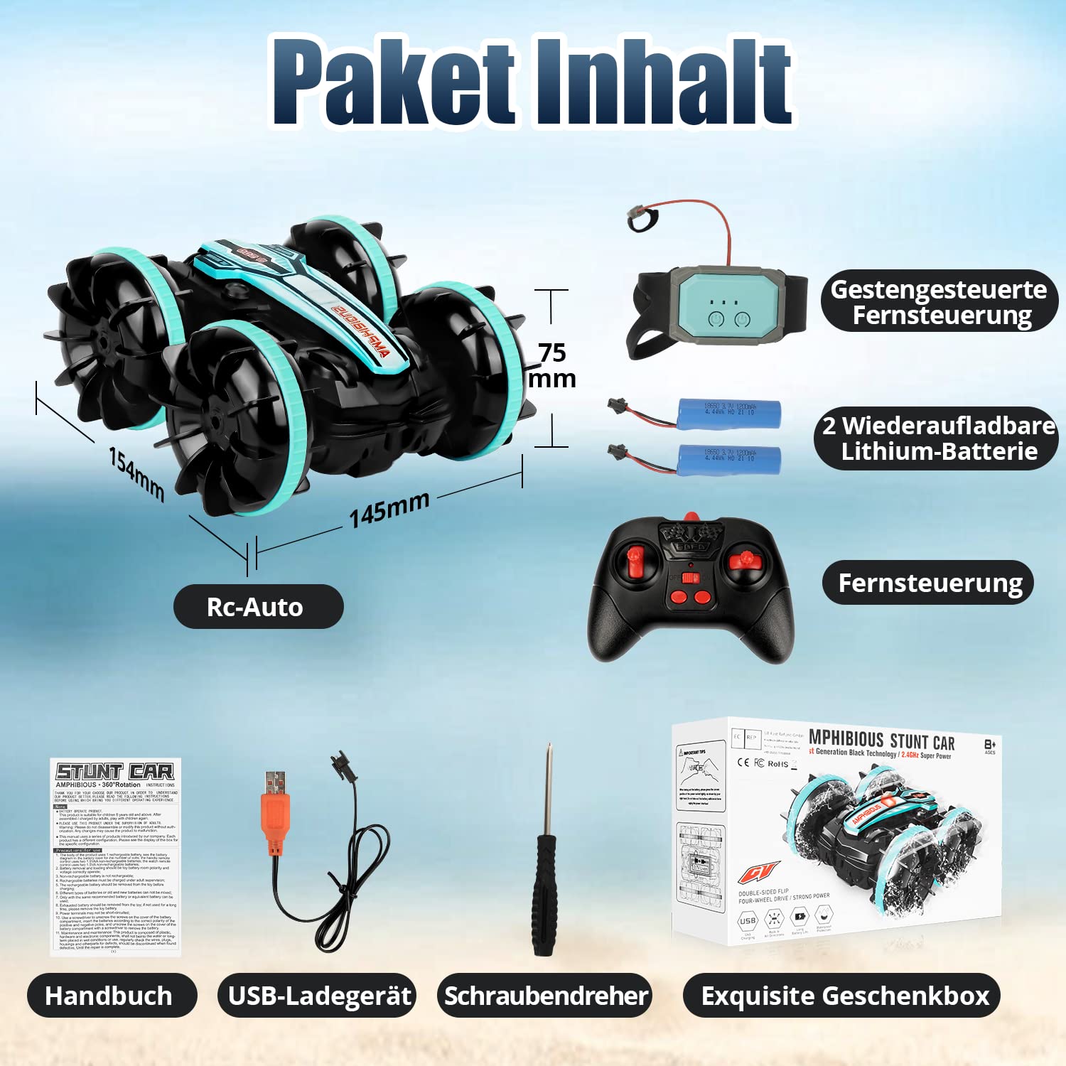 Amazing AmazeFun amphibious remote control car, gesture sensor 4WD remote control off-road toy car for kids, 360-degree rotating 4,5,6,7,8+ years old kids' gifts.