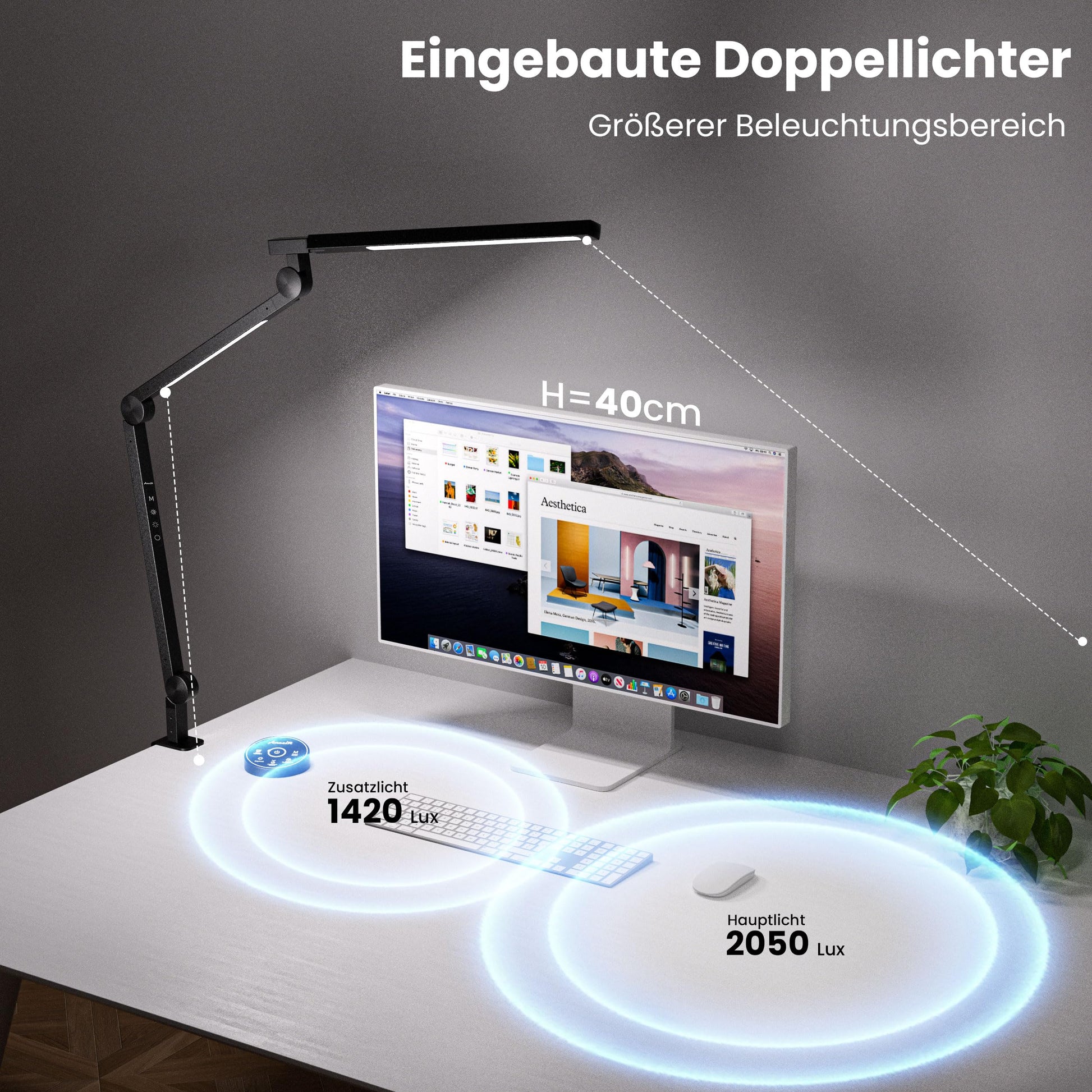 AmazLit Desk Lamp, Dimmable LED Desk Lamp 12W, Dual Light Source Swing Arm Architect Lamp, Adjustable Color Temperature Table Lamp Clamp, Office Lamp with Remote Control.