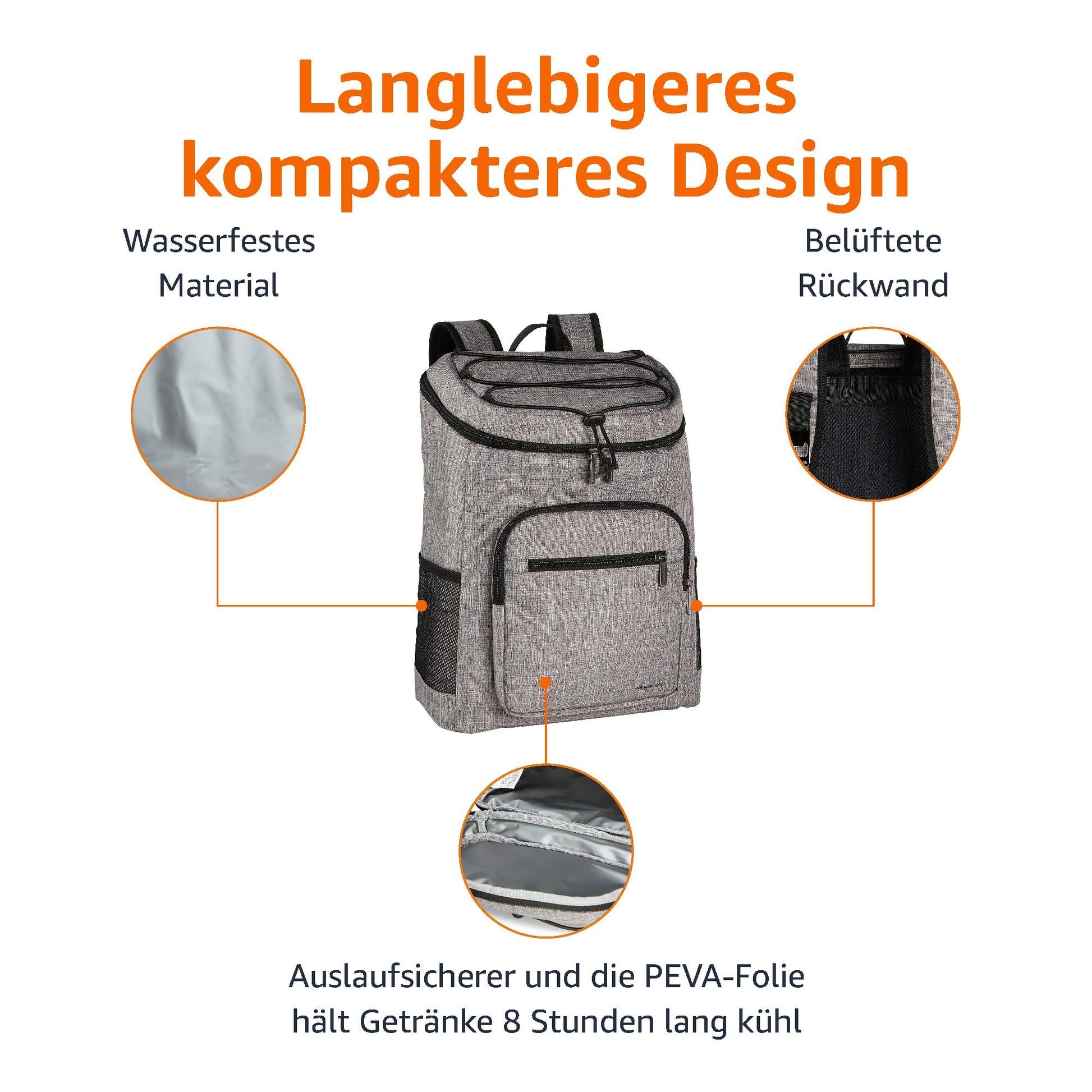 ["Can hold up to 30 cans (330 ml), plenty of room for all your essentials","Multiple pockets: 1 spacious main compartment, 2 side mesh pockets, 2 large front zipper pockets for storing utensils","Waterproof fabric to keep the surface of the cooler dry and clean. Insulated with leak-proof PEVA lining to keep drinks cold for hours","Integrated bottle opener means less packing, an elastic band on top allows for storing wipes or hats, 2 side mesh pockets provide dry storage","Adjustable, padded shoulder strap offers high carrying comfort","This product information is provided by Amazon EU S.à r.l., L-1855 Luxembourg. For assistance, visit amazon.com/pbhelp."]