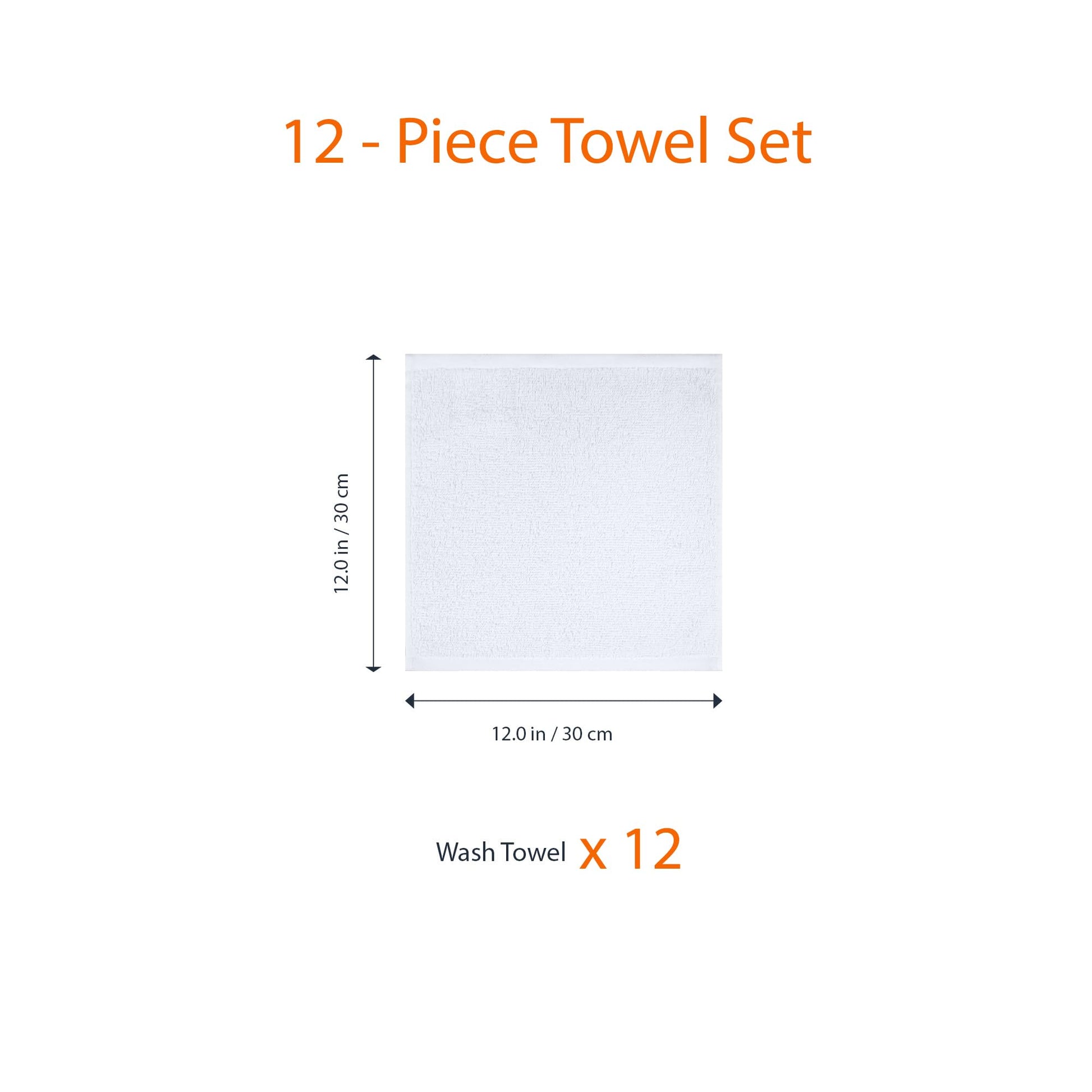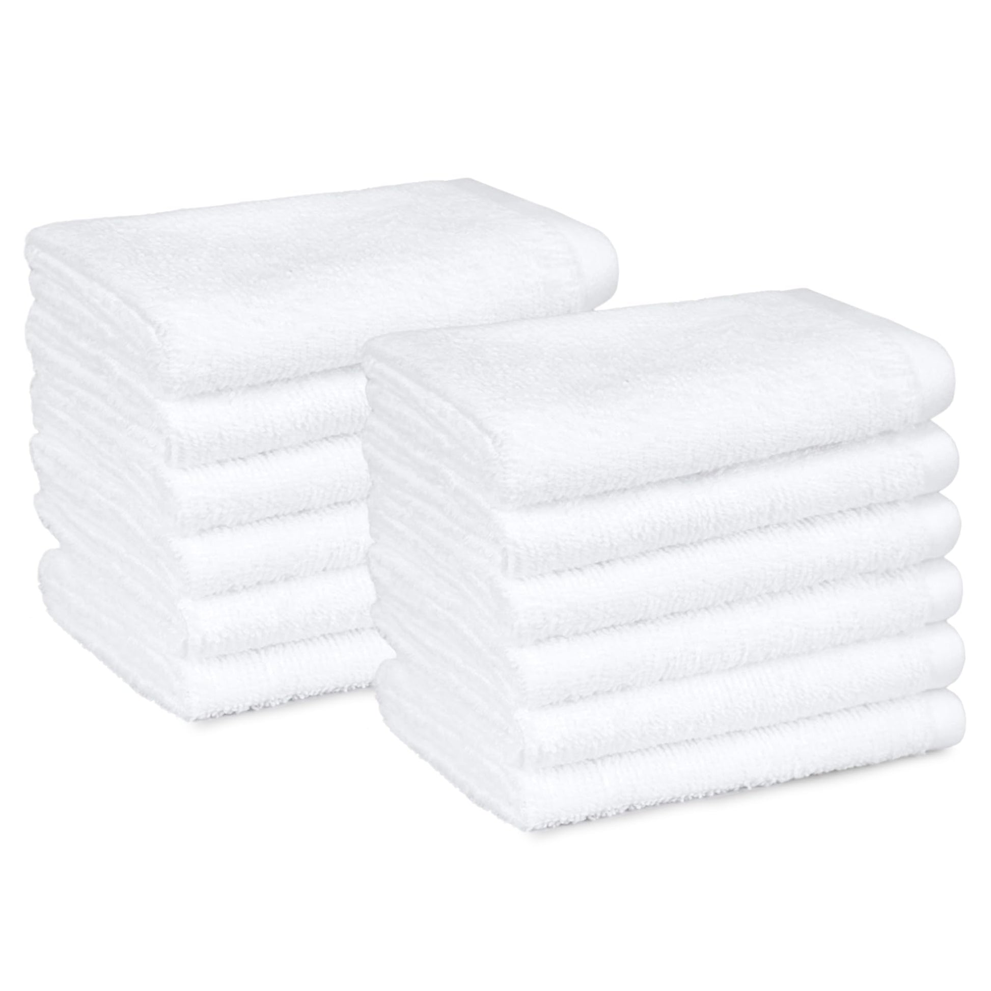 ["12-Pack Washcloths for Home, Office, or Gym","Durable, highly absorbent, and quick-drying thanks to 100% cotton terry in loop design","Soft enough for use on the face and absorbent enough for household cleaning tasks","Reinforced edges prevent seams from unraveling","Suitable for washing machine and dryer; Dimensions: 30 x 30 cm"]