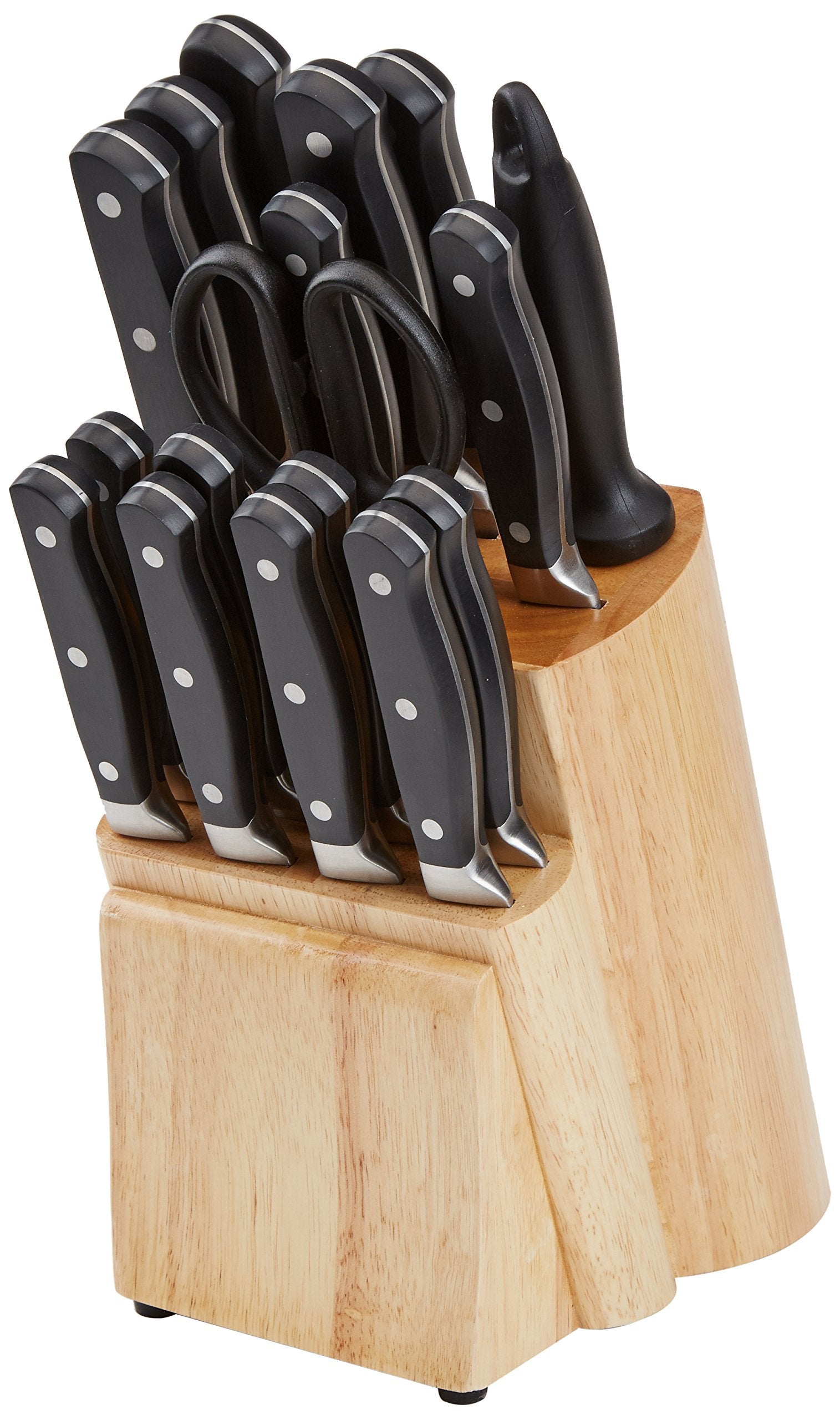 Amazon Basics Premium Knife Block, 18 Pieces, Black