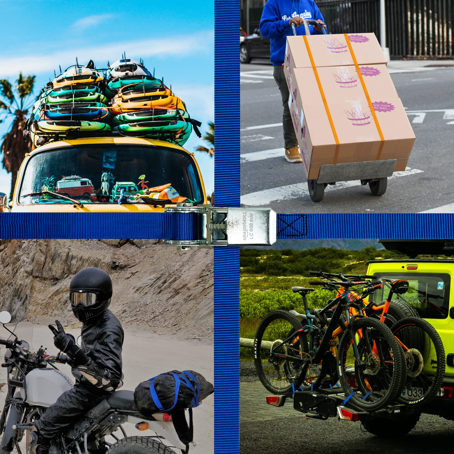 Amazon Basics Ratchet Tie Down Straps, 6m long, 25mm wide, 800kg capacity, compliant with DIN EN 12195-2, 10 pieces, Blue