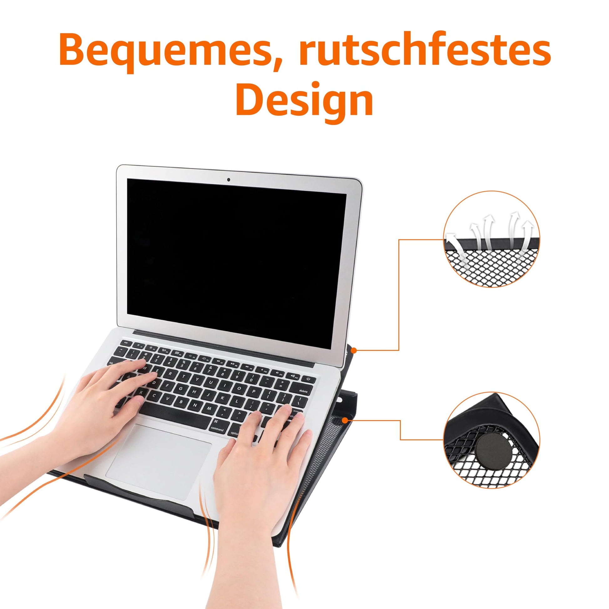 ["Improved ventilation: The steel grid construction of this laptop stand promotes excellent airflow, prevents overheating, and optimizes cooling for powerful laptops.","Adjustable ergonomics: 7 adjustable height and angle settings provide individual comfort and productivity, and can be customized to different reading and typing preferences.","Universally compatible: Supports laptops from 10 to 17.3 inches (25.4 to 43.9 cm), including popular models like MacBook Air, MacBook Pro, Lenovo, ThinkPad, Dell, HP, ASUS, Chromebook, and more.","Robust construction: Made of lightweight yet sturdy steel, with non-slip pads on each corner to minimize movement and vibrations during use.","Dimensions: 13 x 11.3 x 7.3 inches (L x W x H) at maximum height, Weight: 2 lbs."]