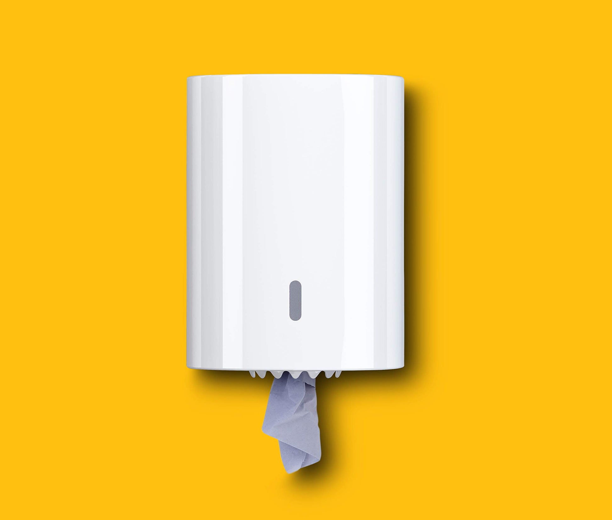 ["In the box: 6 packs of 2-ply, blue, recycled paper towels; 450 sheets per roll (30.0 x 20.0 cm per sheet); a total of 2,700 sheets", "Blue rolls made of recycled paper; efficient absorbency for one-sheet drying; blue color for use and cleaning in the kitchen", "Suitable: Remove the cardboard core in the middle of the blue paper towels from Amazon Commercial to use them in the universal paper towel dispenser with center pull", "Versatile: Ideal for cleaning mirrors, windows, surfaces, and faucets or stainless steel appliances in kitchens, restaurants, or cafeterias"]