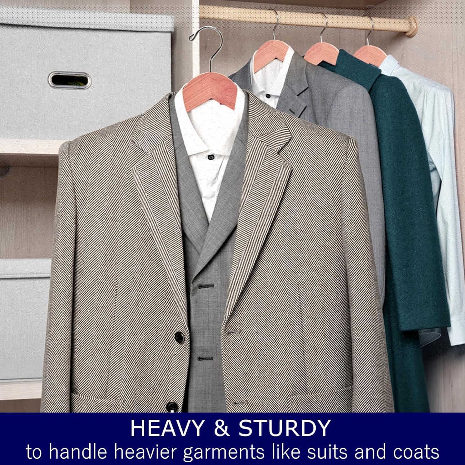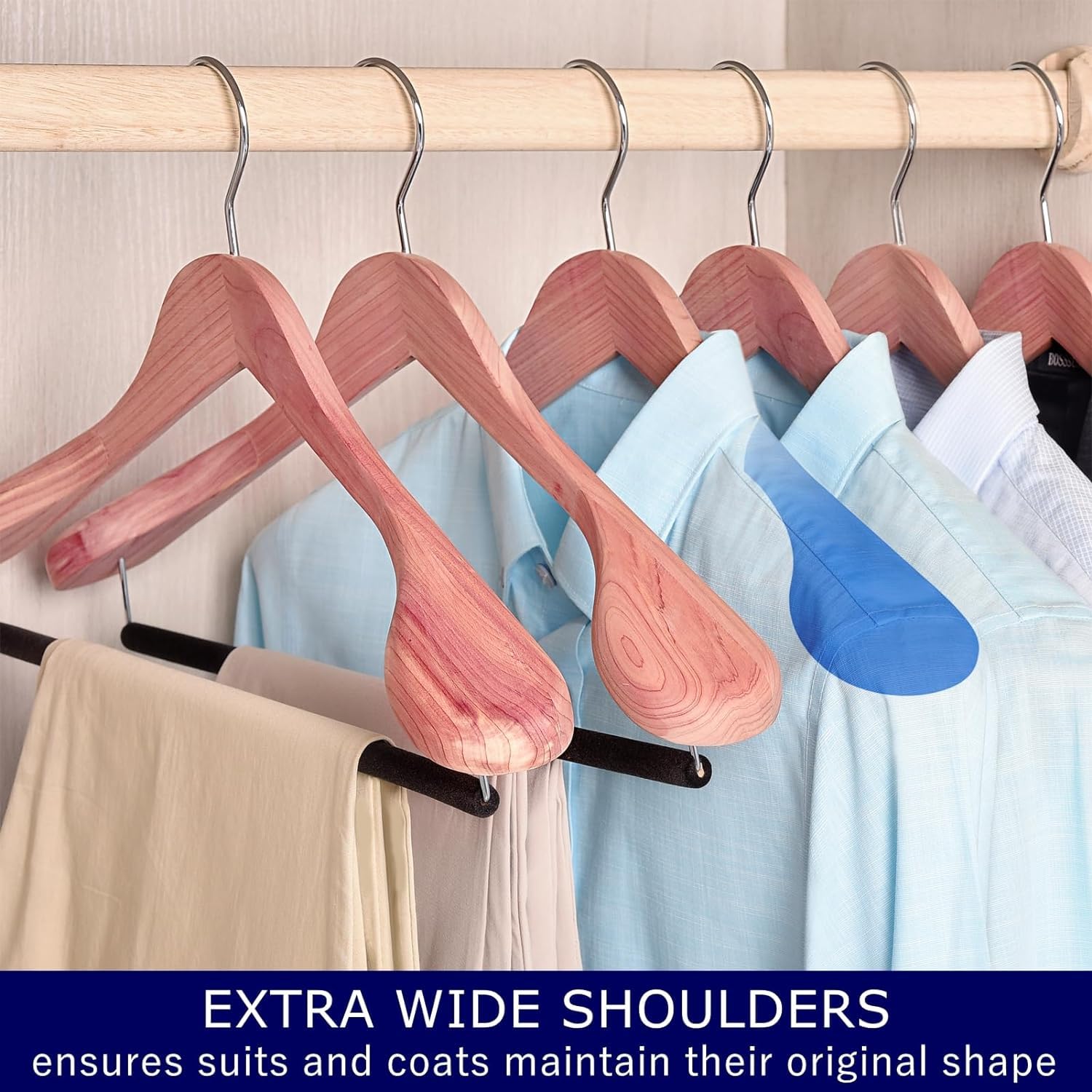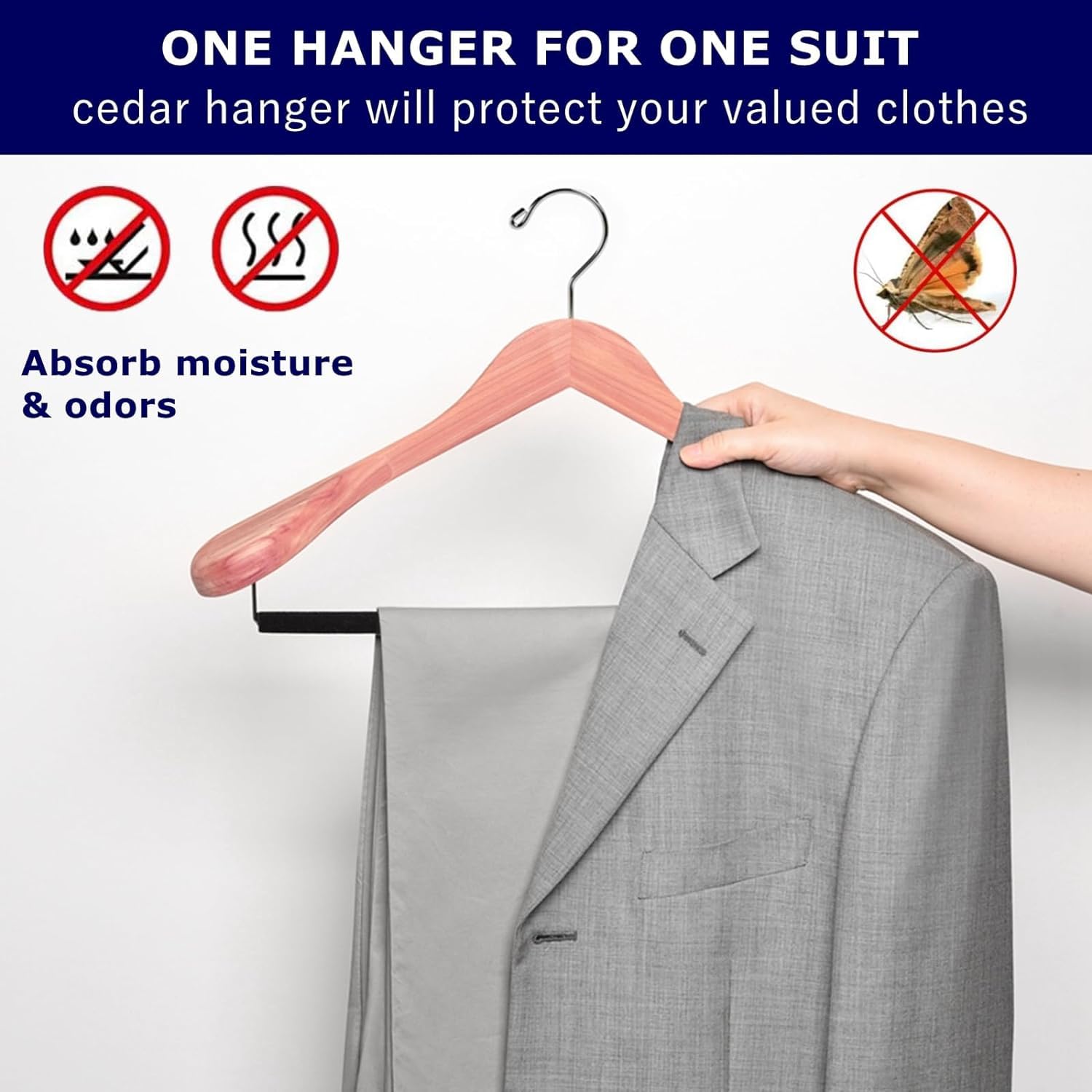 "(5) Only hangers made from cedarwood imported from North America can be paired with your favorite clothes, showcasing the beauty of the clothes and reflecting your high-quality life. Our fashionable wooden hangers are suitable for suits, shirts, coats, jackets, trousers, etc."]