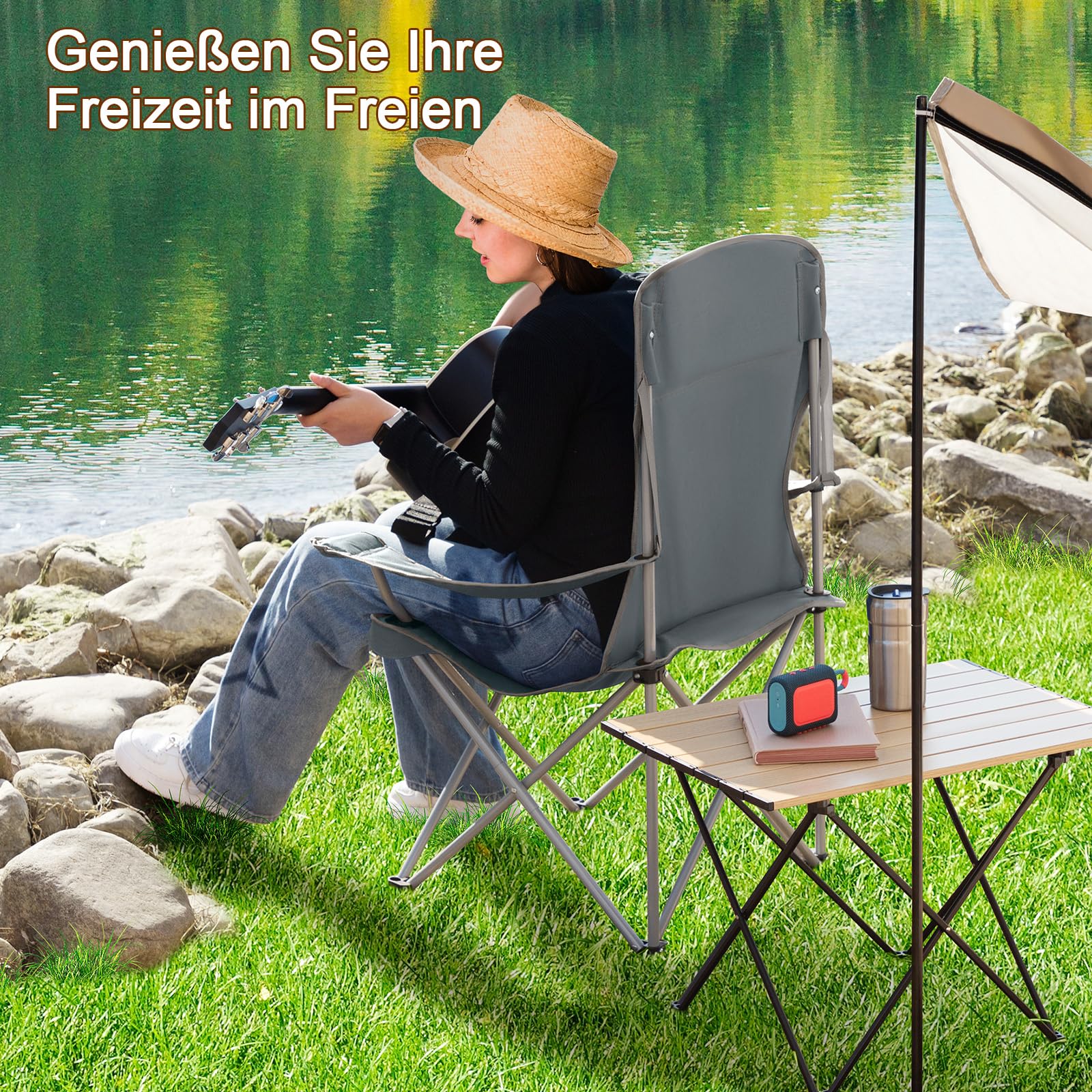 AMHANCIBLE Folding Camping Chair 2 Pack, Foldable Fishing Chair with Cup Holder, Garden Chair with High Backrest, Folding Camping Chair with Armrests, Lightweight, Portable Camping Chairs, up to 150kg EOCC02GY