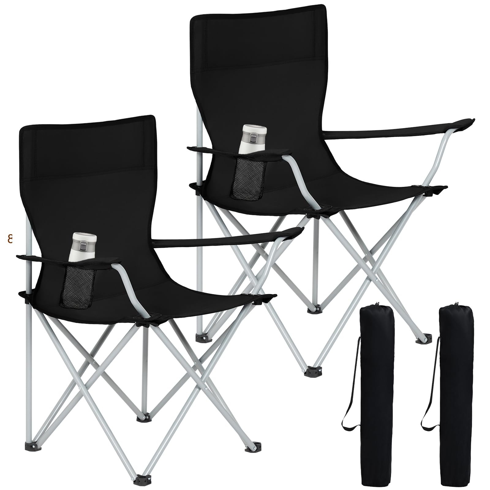 AMHANCIBLE Folding Camping Chair 2 Pack, Foldable Fishing Chair with Drink Holder, Portable Camping Chair with Armrests and Carry Bag, Lightweight Camping Chairs Set of 2, Up to 120kg Capacity, Black OCC01BK