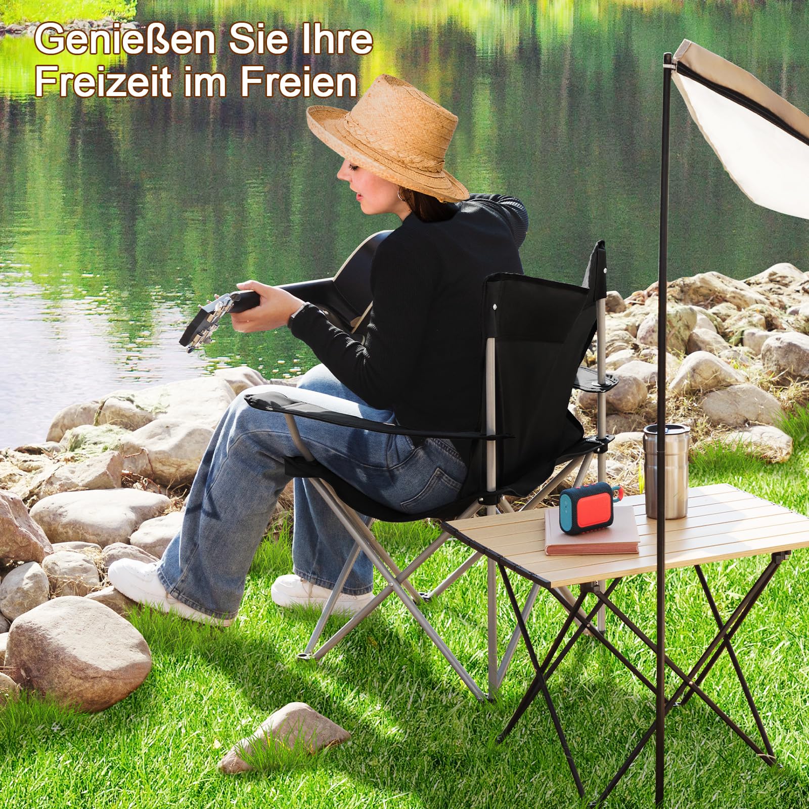 【Easy to Carry】You can fold the portable camping chair in a short time and put it in the included carrying bag. With a product weight of 2.1 Kg, the chair is very easy to carry and store in a space-saving manner. Very ideal as a fishing chair.",