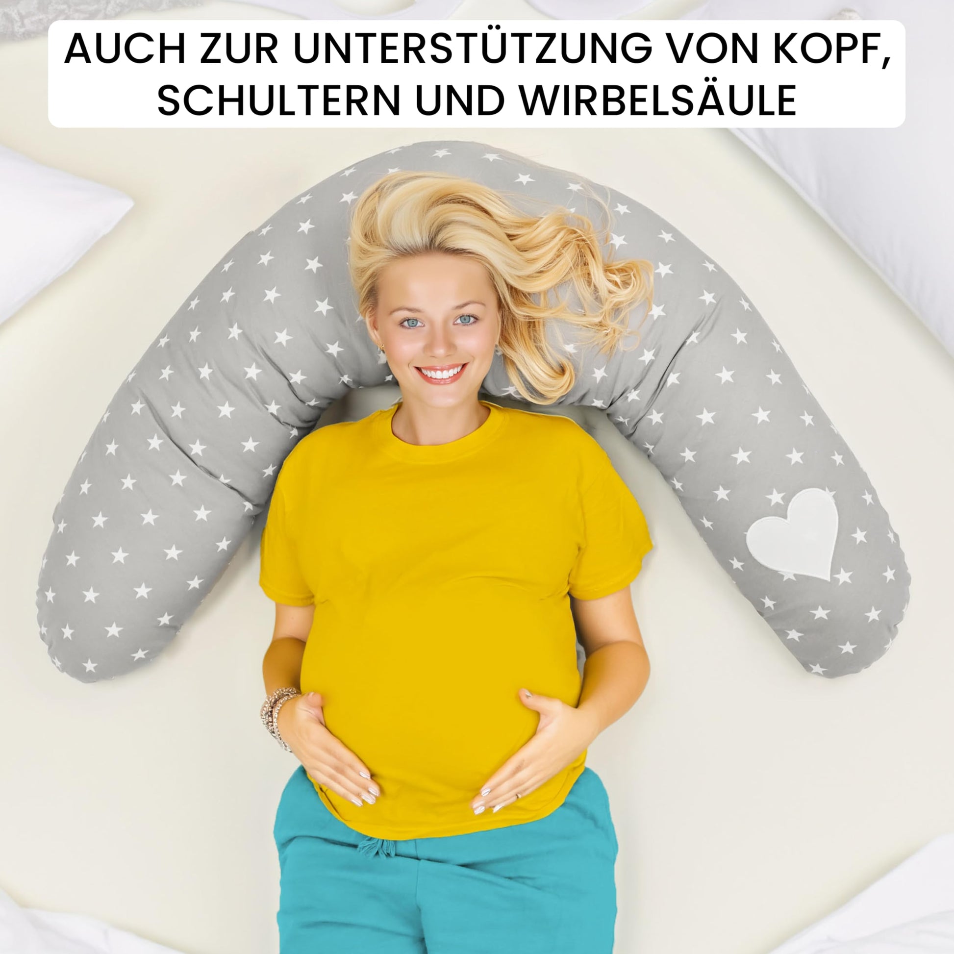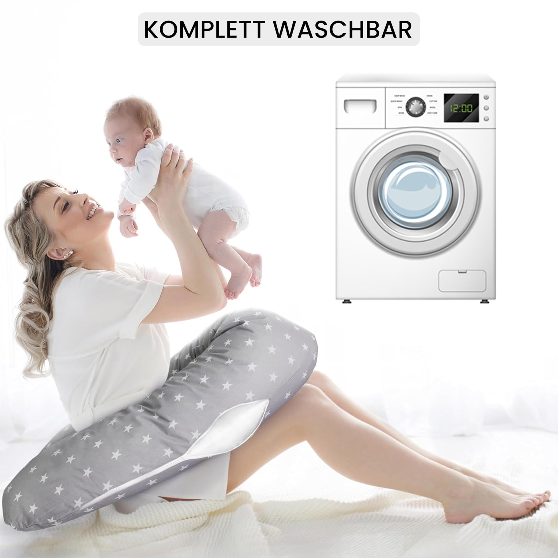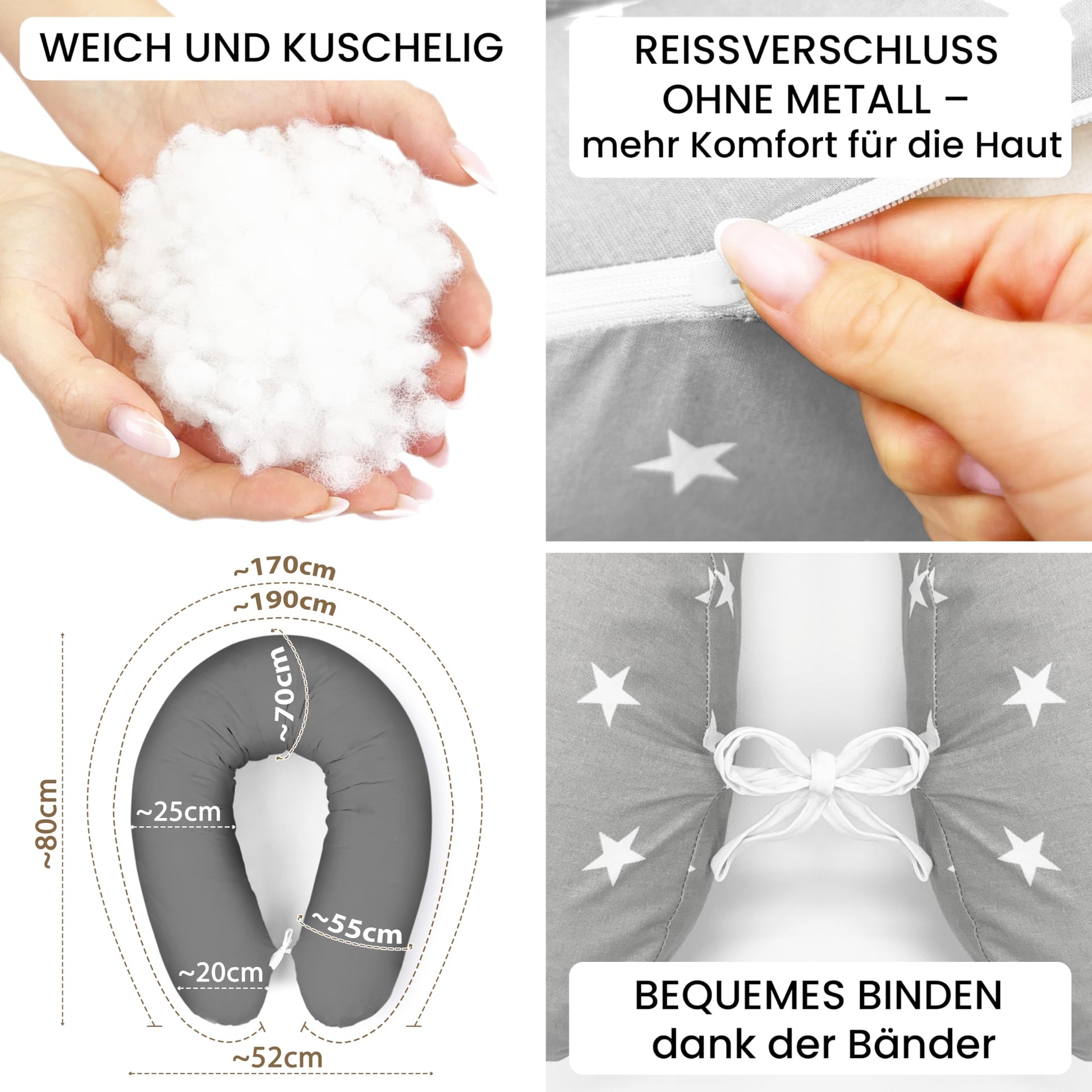 Amilian Nursing Pillow XXL - Pregnancy Pillow & Side Sleeper Pillow Baby - Pregnancy Pillow and Body Pillow - Grey with Stars - Pregnancy Pillow