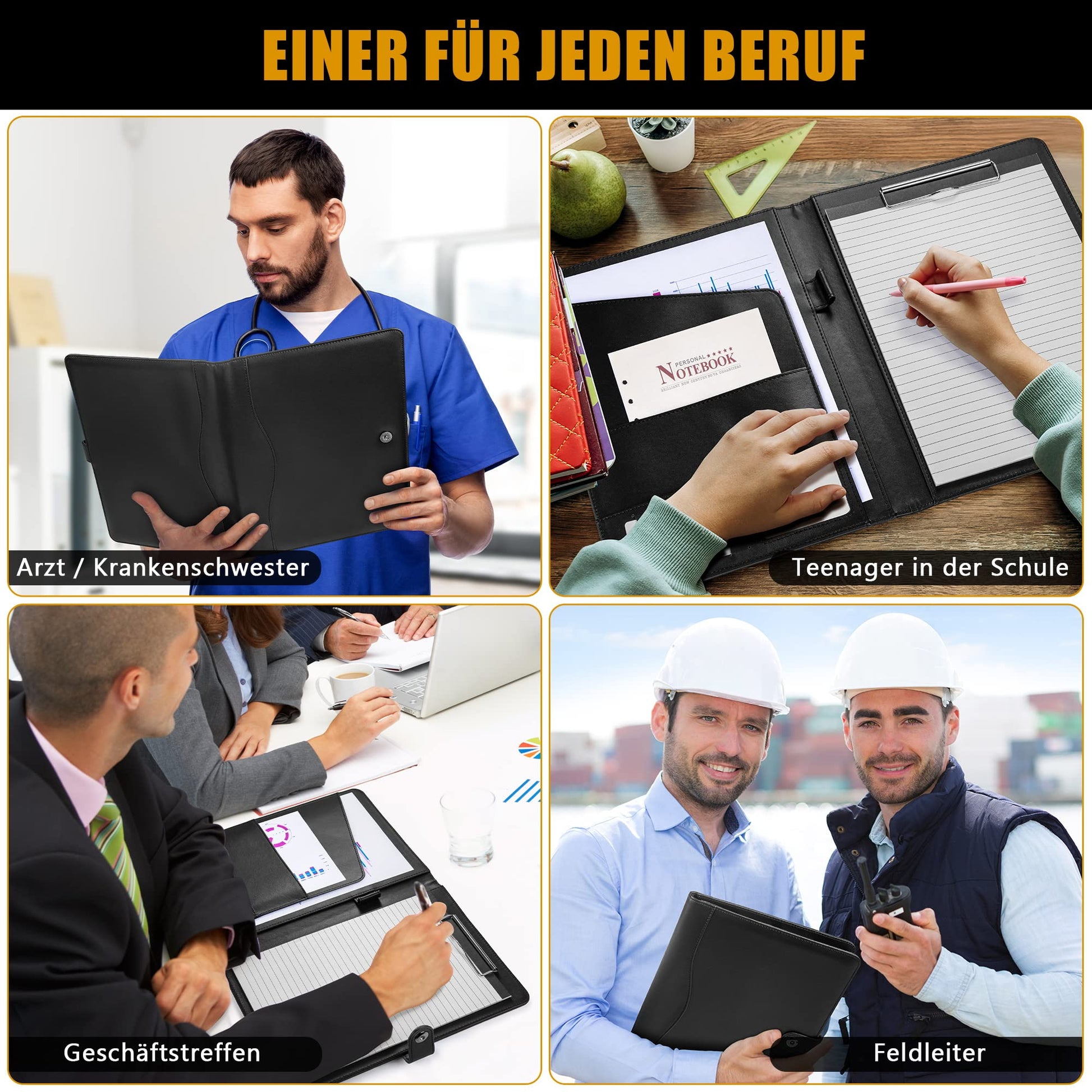"Universally usable: This A4 PU leather conference folder can be used as an office folder, sales folder, meeting folder, college folder, and especially as a gift, this presentation folder A4 is ideal."