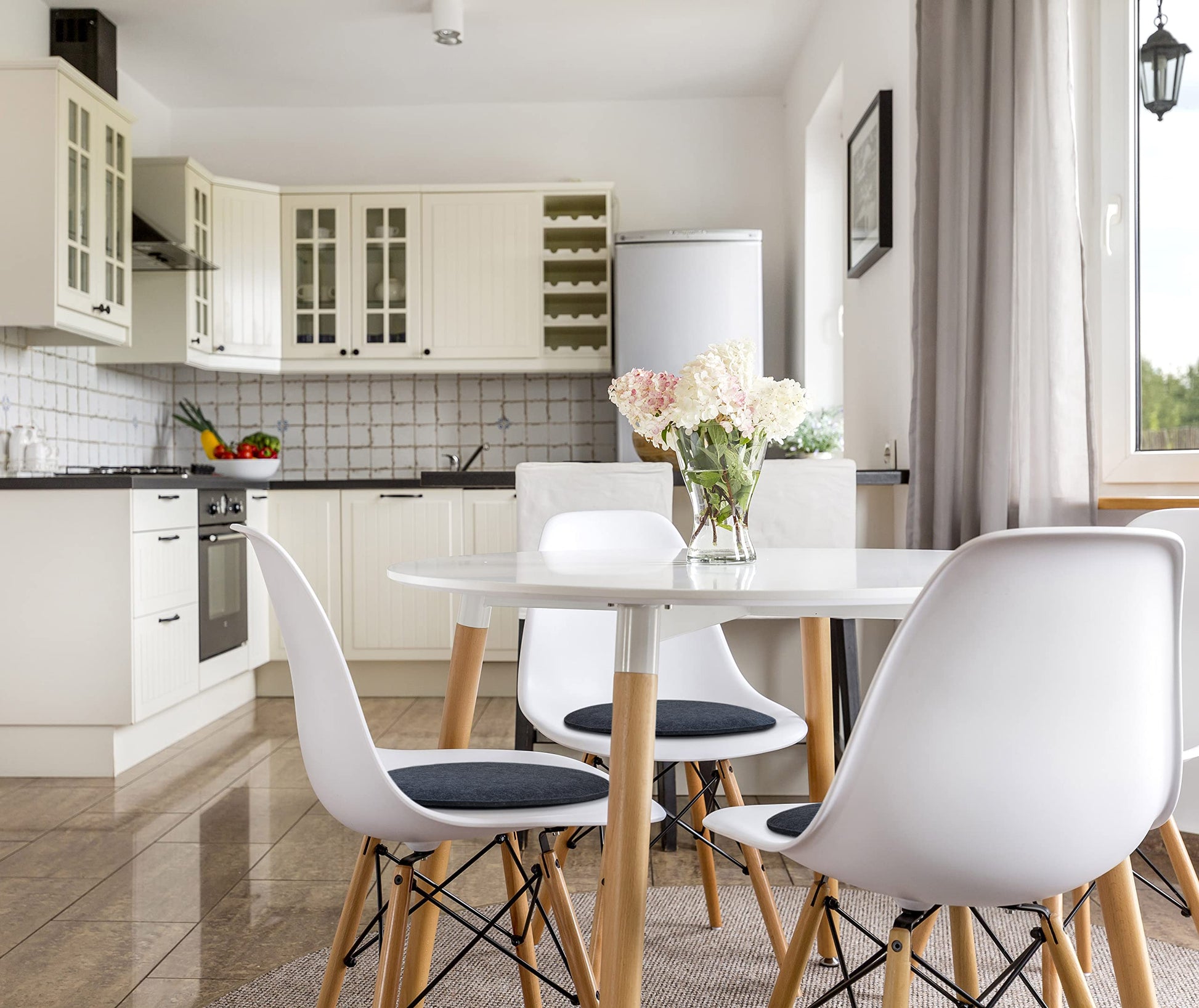 HOW TO CARE FOR THEM?: If a stain gets on the cushions, we recommend cleaning them with a damp cloth and detergent or soap. Do not put the chair cushions in the washing machine, as they could lose their shape and not look as nice after the spin cycle. Delivery includes: 4 chair cushions (diameter 40cm)"