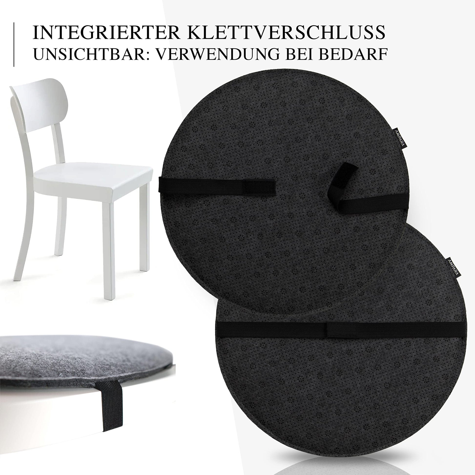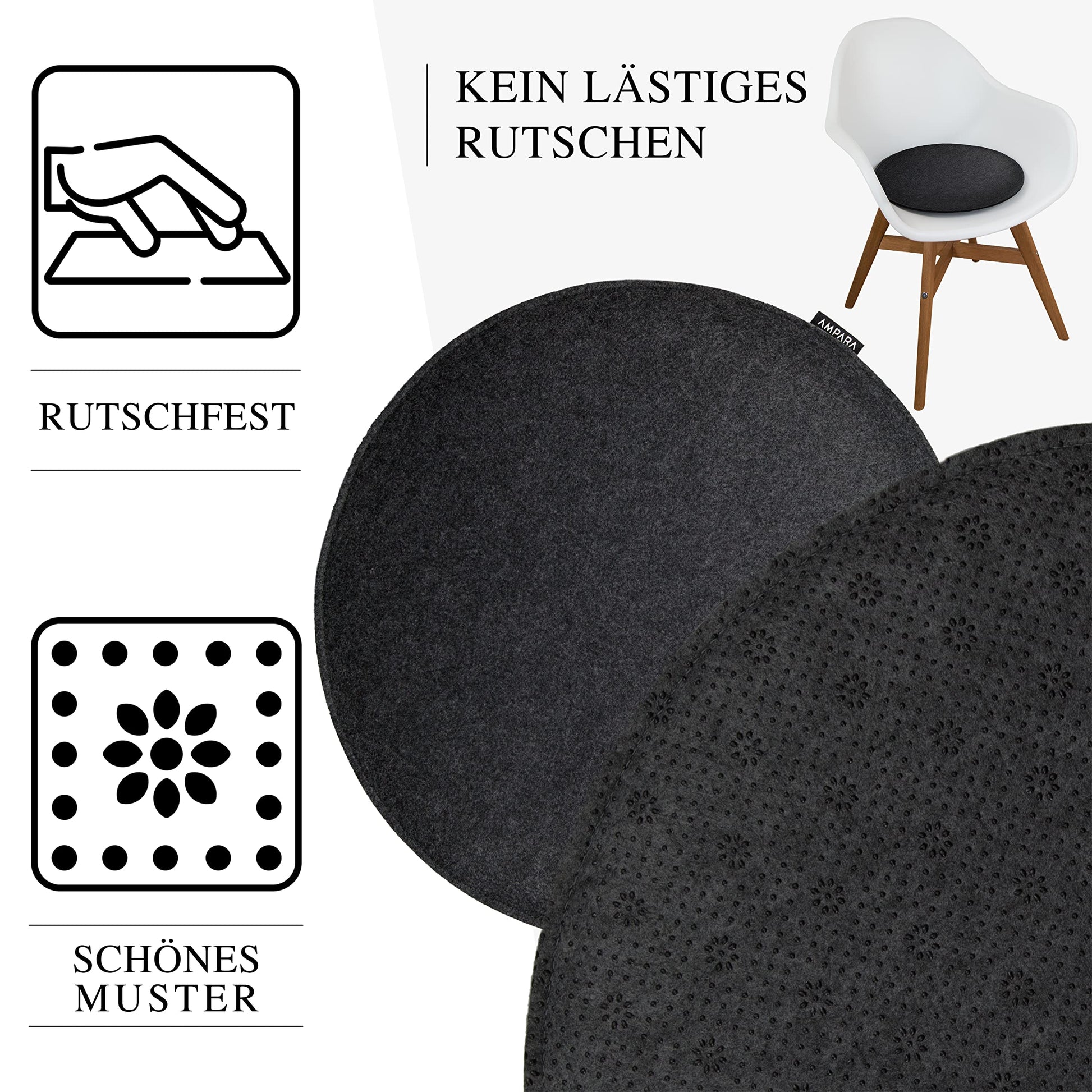 Ampara - 4 piece set - Elegant round chair cushions 40cm - non-slip & cozy, round felt seat cushions, dark gray