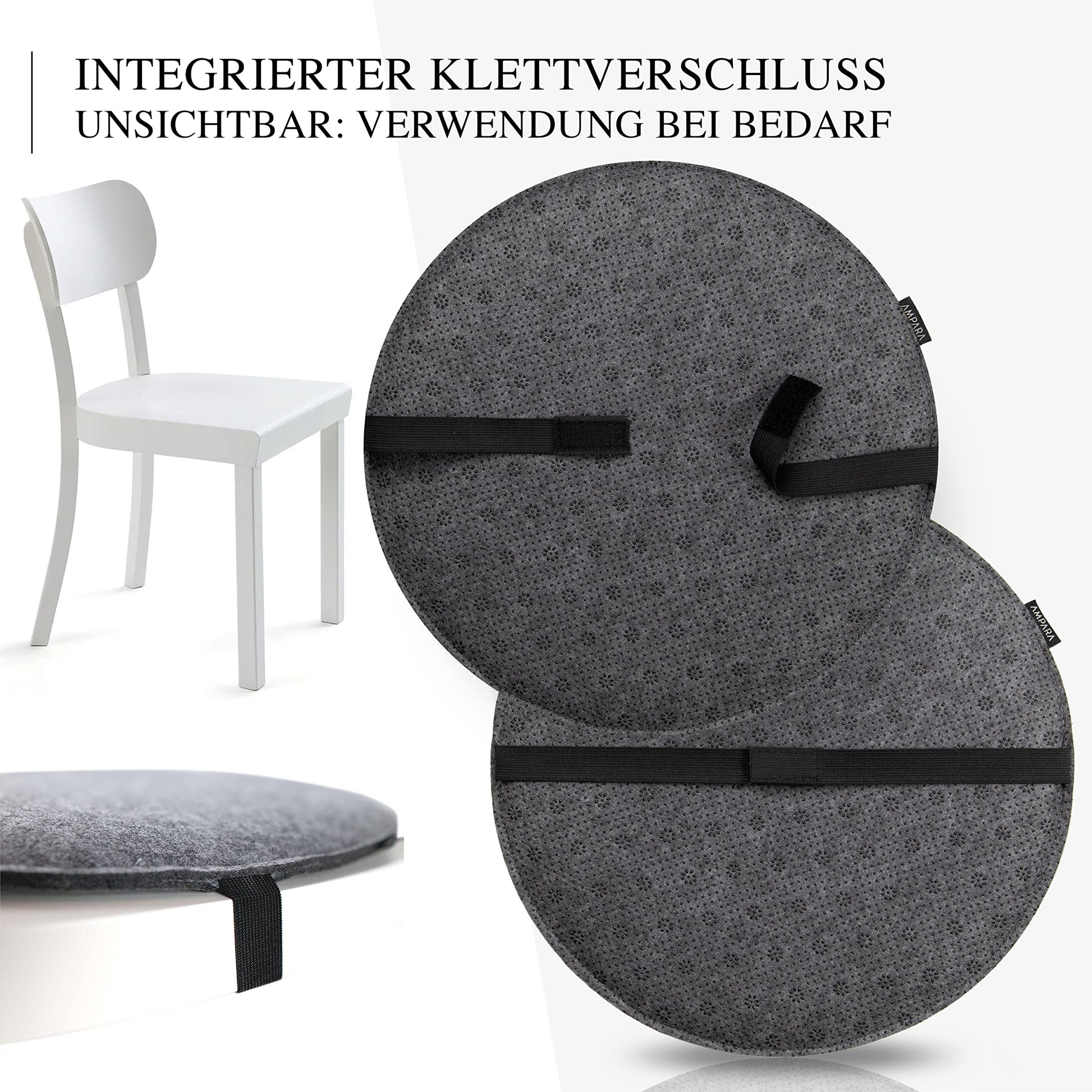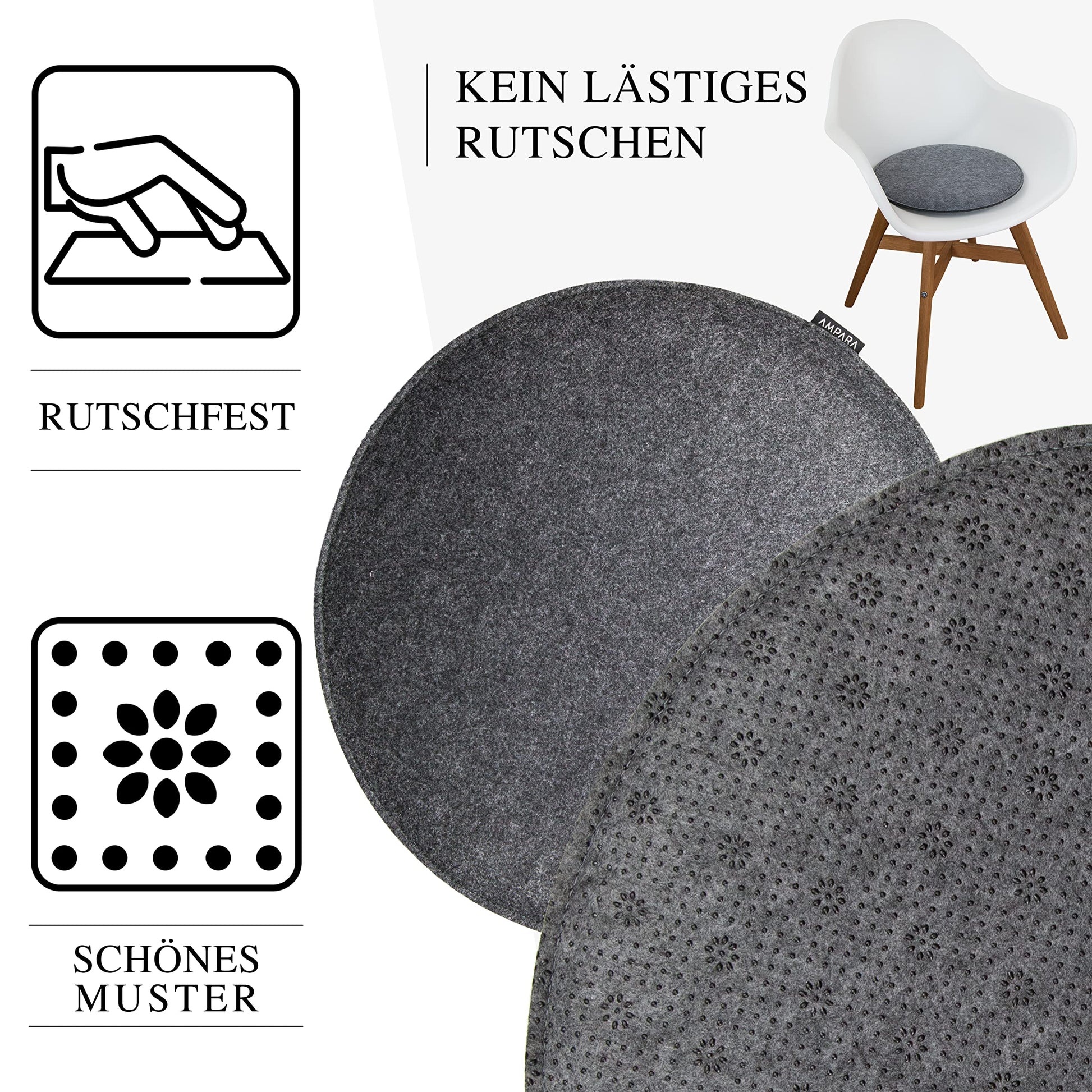 Ampara - Set of 4 - Elegant round chair cushions 40cm - non-slip & comfortable, round felt seat cushions, grey