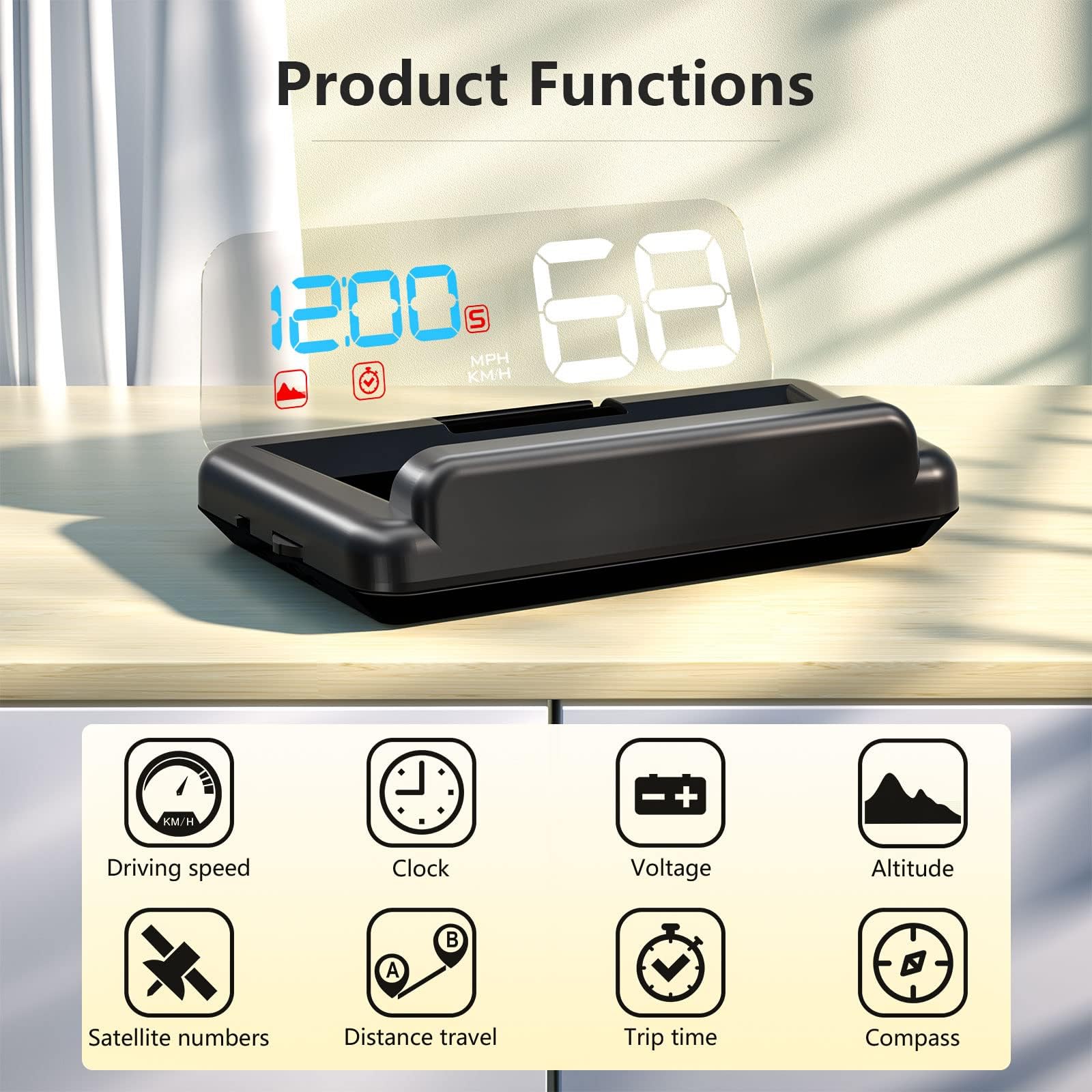 AMROOLOO GPS Speedometer, Mirror Reflective Car Head Up Display, Displays Speed and Time, Compatible with All Vehicles.