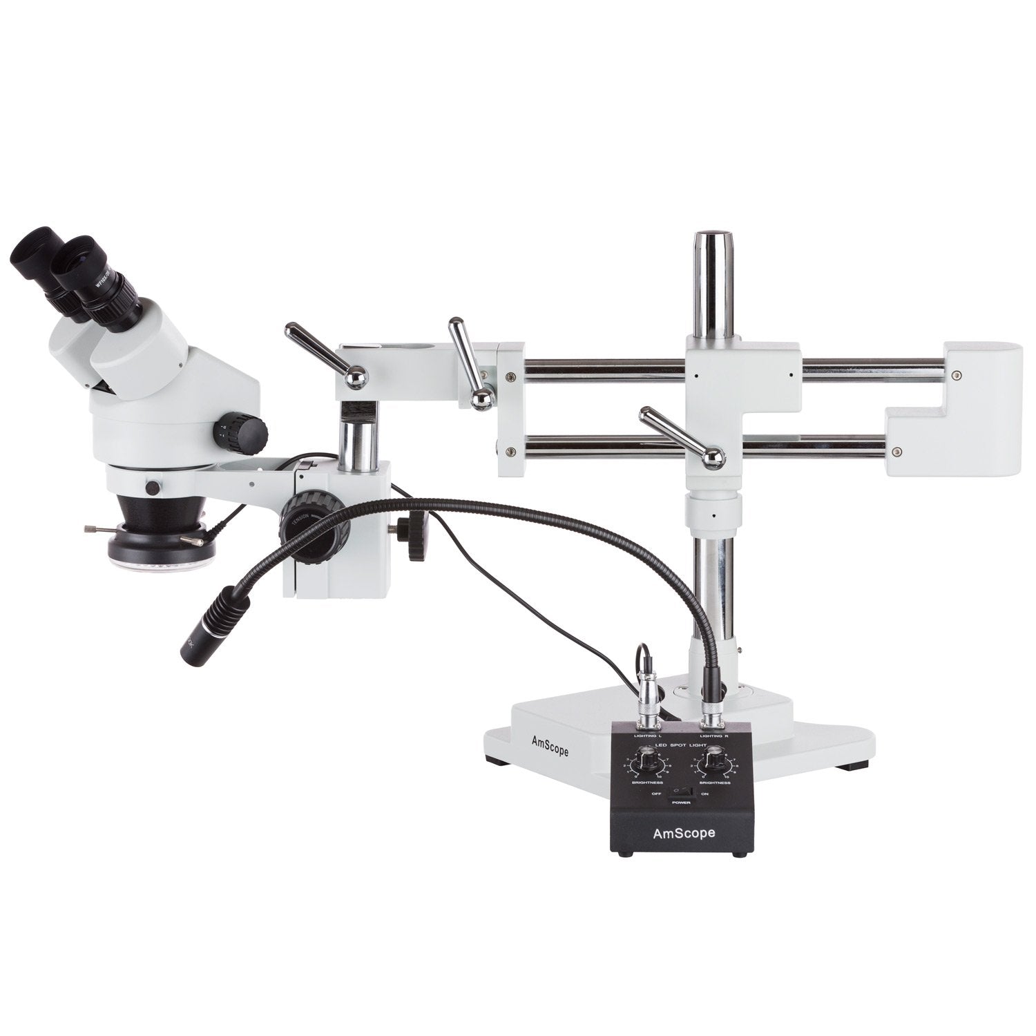 AmScope LED-11CR high-power LED dual-illuminator with gooseneck and ring light.
