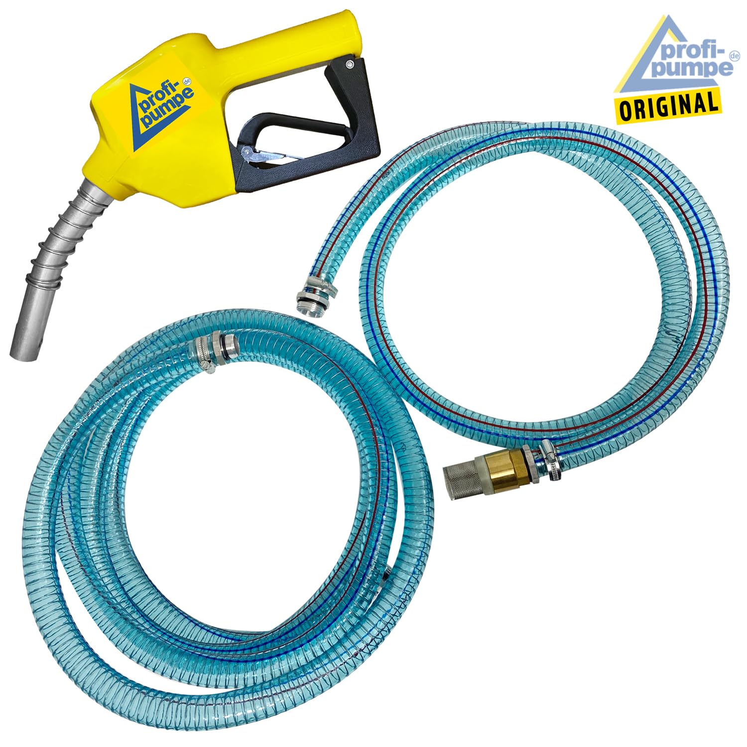 ["High-quality complete set with 230V diesel pump for DIESEL & BIODIESEL & HEATING OIL with counter, automatic nozzle, 25mm hose and all accessories","SELF-PRIMING (after previous filling) and RELIABLE!","Flow rate max. 528 gallons/hour | Head 65.5 feet","\"On\" and \"Off\" switch with safety device | Heavy-duty, robust, proven quality","The counter displays both the current and total reading!"]