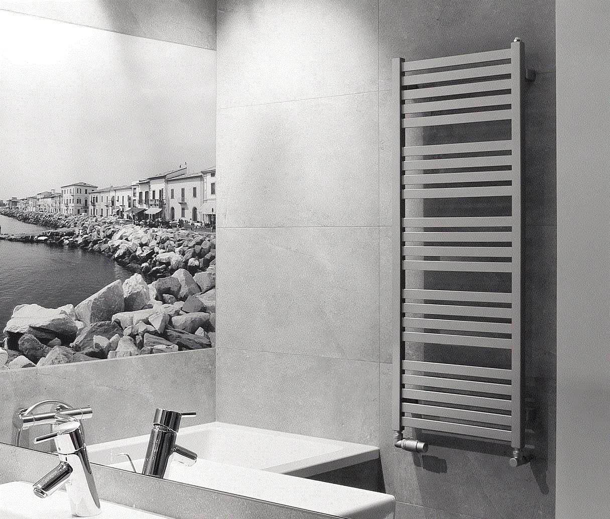 "Clear design - with angular cross tubes The special feature: angular cross tubes for a modern, characterful look. Heater side freely selectable (left or right) No visible brackets in the towel area Elegant attachment to the longitudinal bars, not in the towel area - for a clear look without disturbances.",