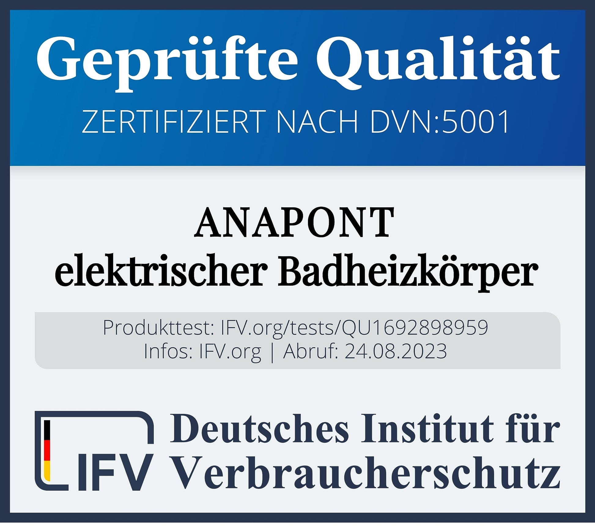 ["MADE IN GERMANY: Our electric towel radiator was manufactured in Germany, confirmed by the German Institute for Consumer Protection, certification: QU1692898959. This ensures quality, durability, and safety for you.",
