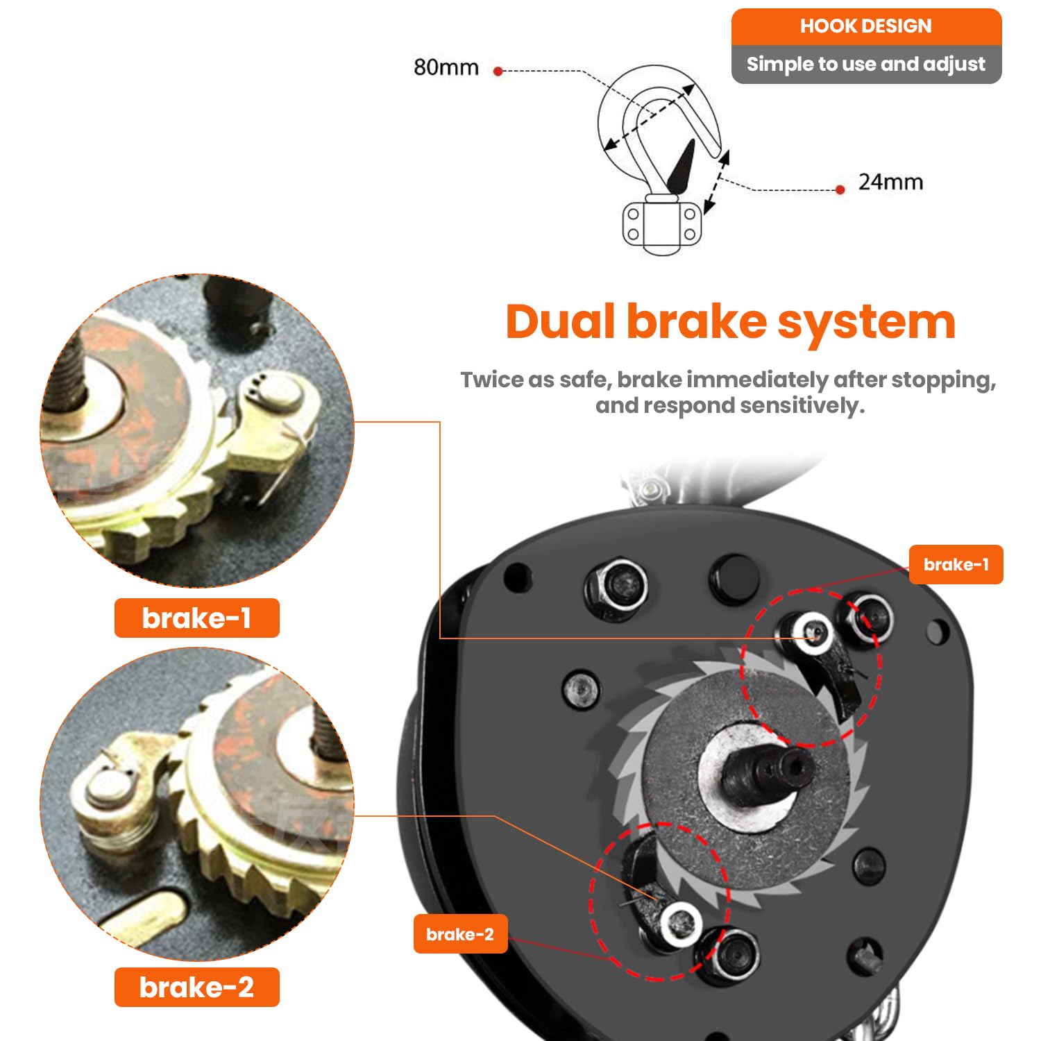 ["1. Taiwan imported Passac G80 manganese steel chain, smooth and non-sticking, continuous chain. The chain is completely galvanized, no dirty oil stains, no rust. The labor-saving pulleys make our work more efficient.",