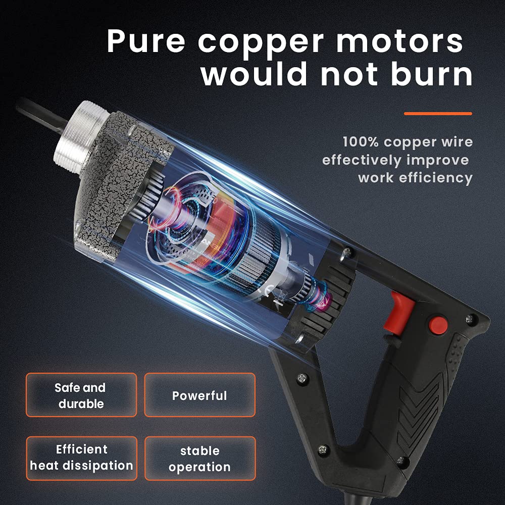 Anbull concrete vibrator, 1300W internal vibrator, bottle vibrator, 2m length concrete compactor, concrete vibrating bottle, mixing shaft speed 4800 rpm, vibration bottle diameter 35mm.