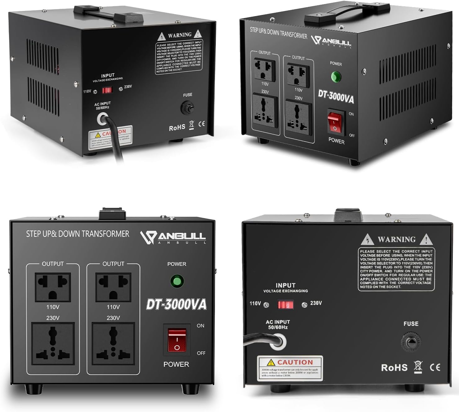 Anbull DT-3000W Voltage Converter Toroidal Transformer, Voltage Converter 110V to 230V, Step up down Converter, plug 230 to 110v, 50-60Hz