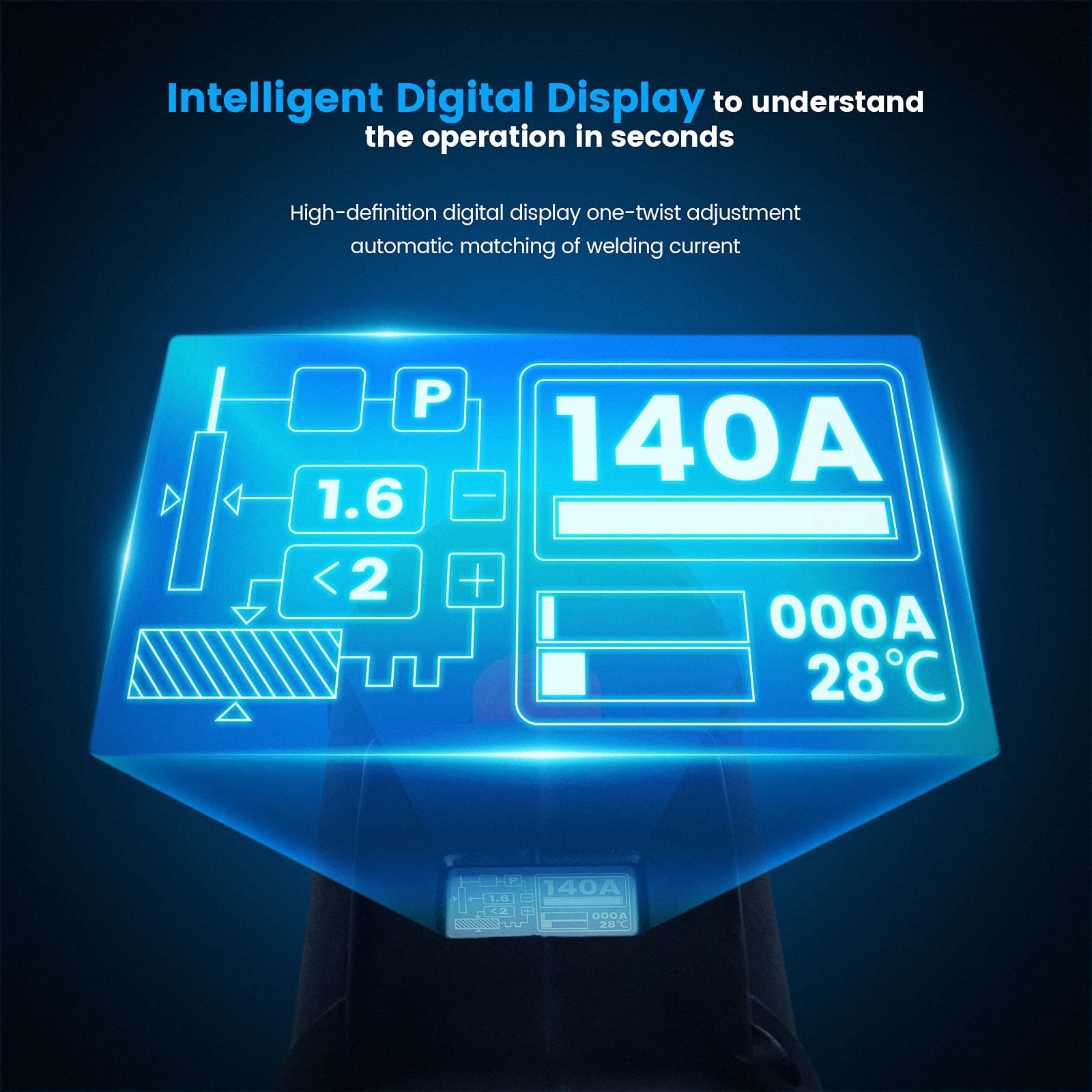 4. "4. 【Smart Display】The electrode welding machine features a smart digital display. The high-resolution display shows current and operating status. Everything is done through the push-button rotary knob of the handheld device."