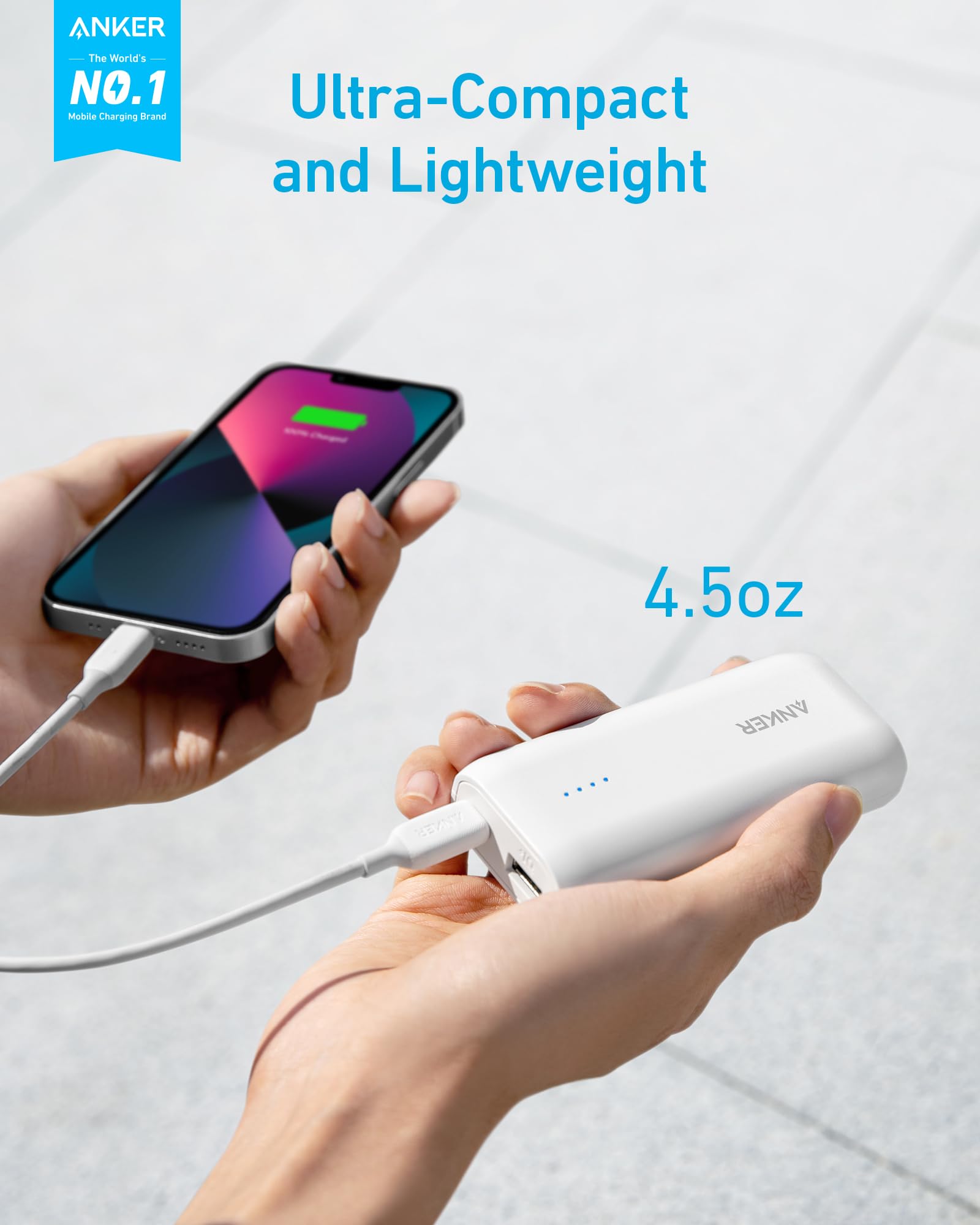 Anchor 321 Powerbank (PowerCore 5K), 5200mAh external battery, Compatible with iPhone 12 and 13 series, Google Pixel, LG, and more (No power adapter)(White)