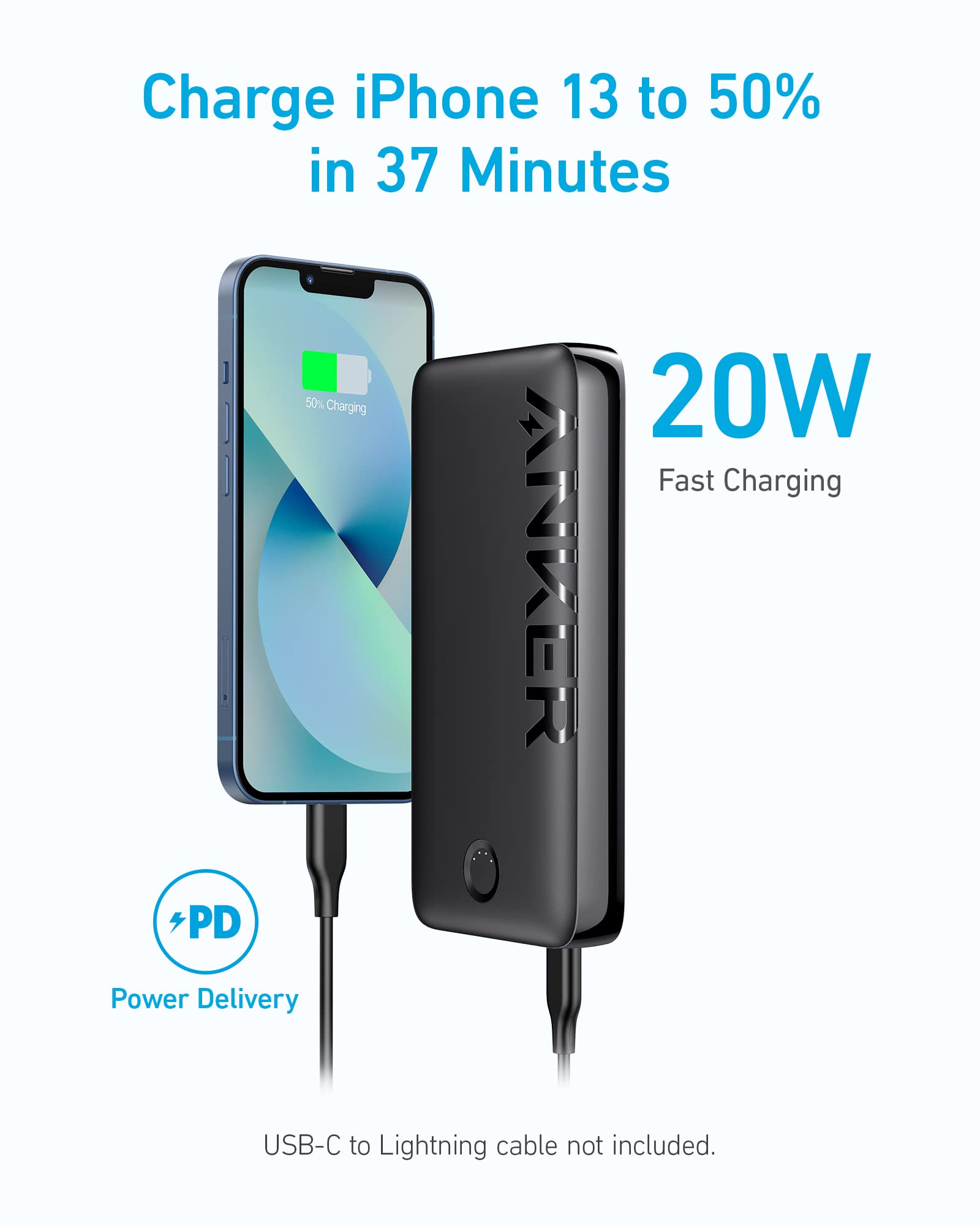 Anchor 335 Powerbank (PowerCore 20K), 20W external battery with USB-C charging, compatible with iPhone 13/12 Series, Galaxy, iPad Pro, AirPods, Apple Watch, and more.