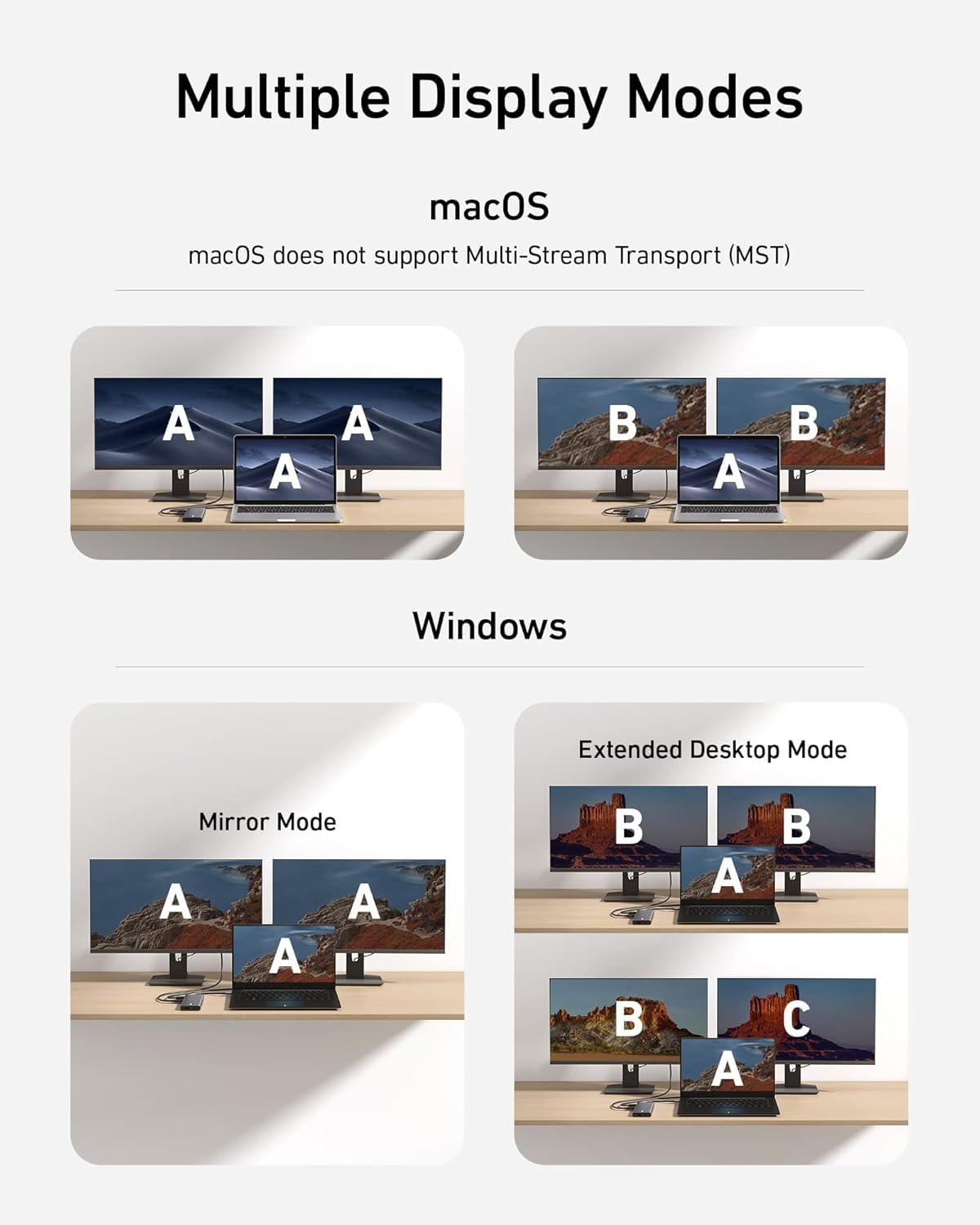 "MULTI-MONITOR DISPLAY: Simply connect to the DisplayPort and HDMI ports to enjoy crystal-clear streaming or mirroring across 2 displays with up to 2K at 60Hz with a DP 1.4 laptop or 1080p at 60Hz with a DP 1.2 laptop.",