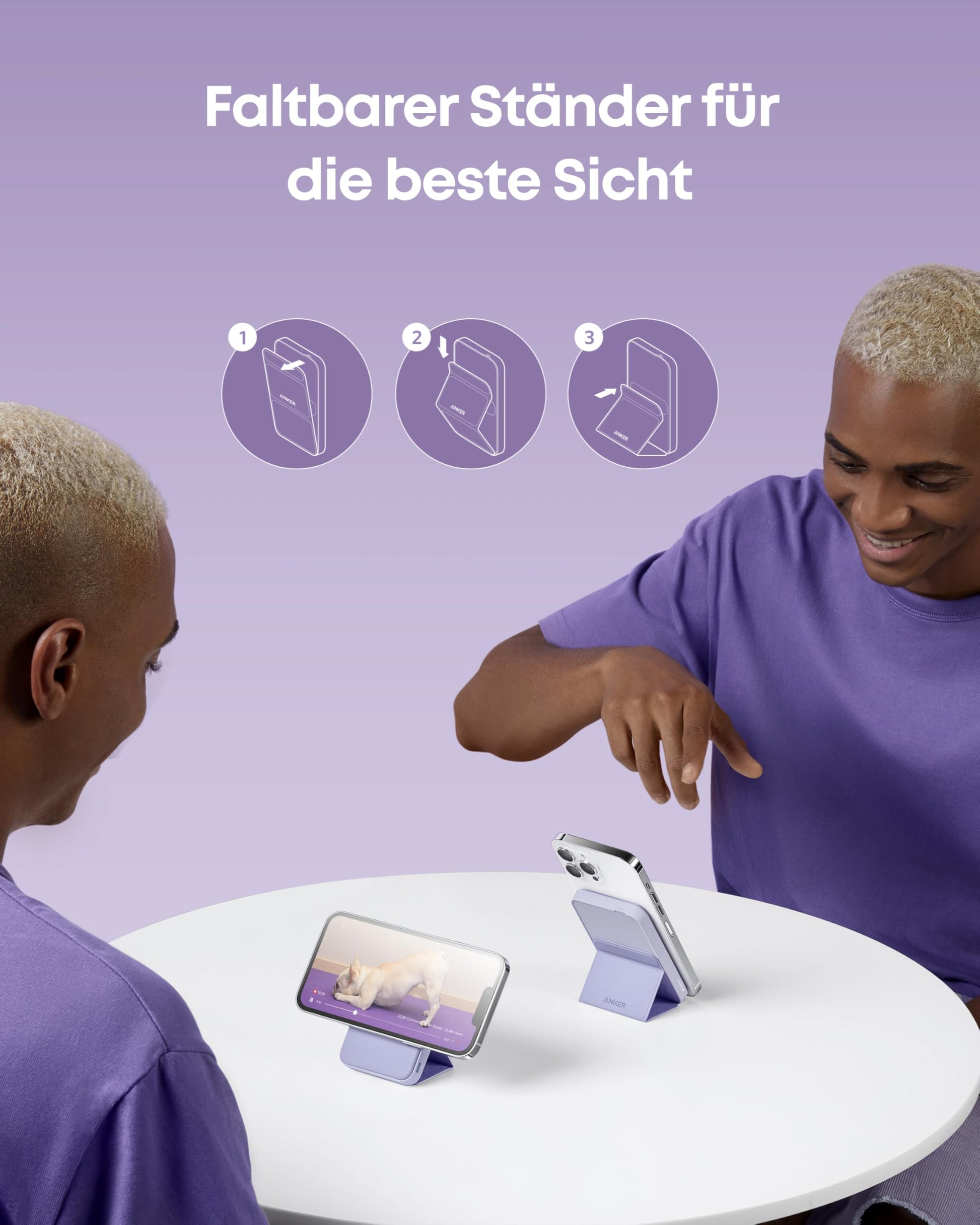 Anchor 622 Magnetic Wireless Power Bank (MagGo), 5000mAh folding magnetic power bank with USB-C for iPhone 17/16/15/14/13/12, Lavender